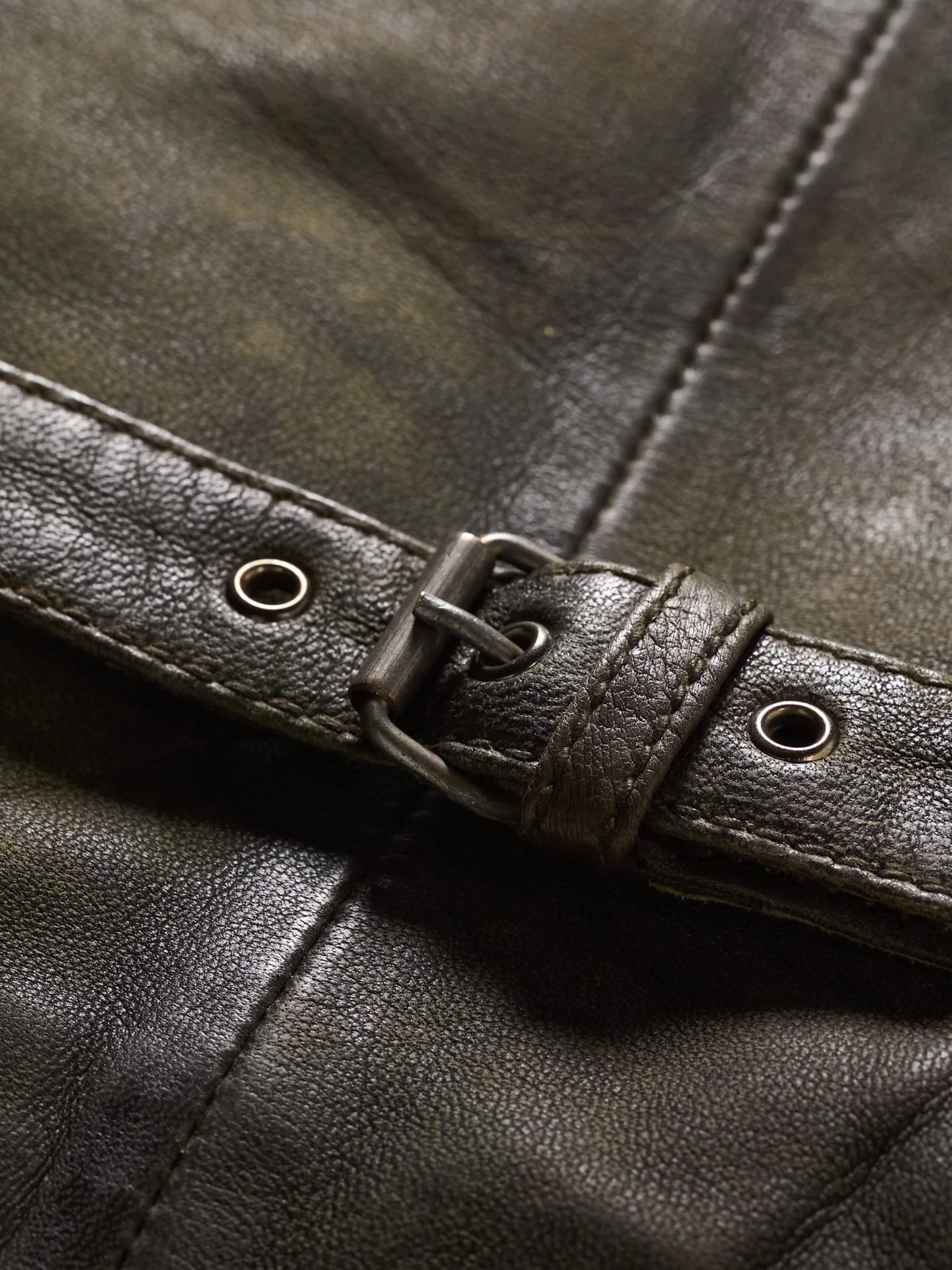 Verarbeitung: Gefertigt ist sie aus superweichem Lammnappaleder, das richtig angenehm auf den Schultern liegt und sich gut an Ihre Konturen anpasst. Das Leder wird dezent angeschliffen, anschließend gefärbt und gewaschen – so entsteht eine gelebte Patina, die jedes Teil zum Unikat macht. Zwei Leistentaschen. Schlanker, aber nicht zu enger Regular Fit.