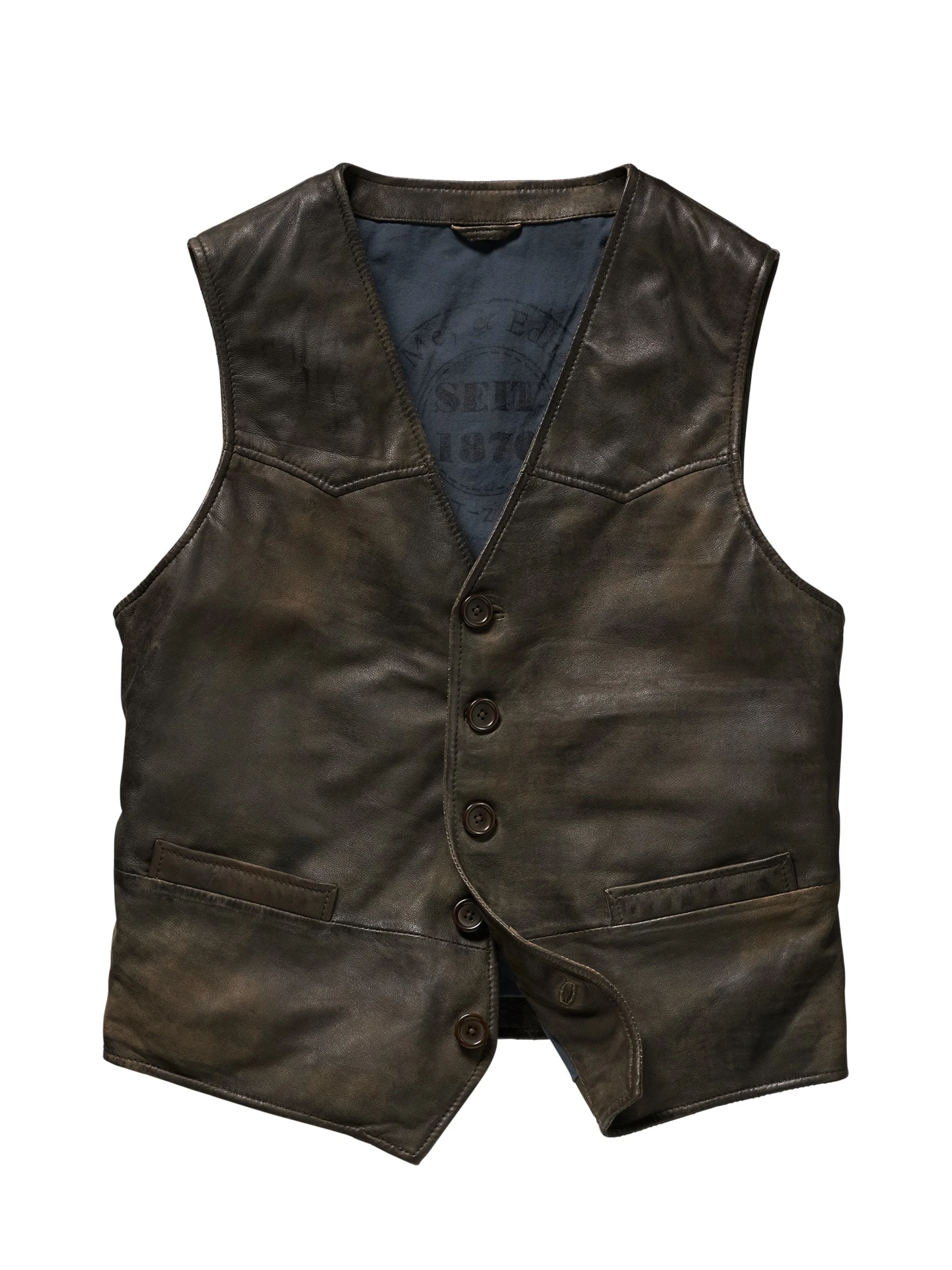 Eine Weste als Zeichen der Unabhängigkeit. Unbeeindruckt von Dresscodes und Klischees über lederne Bikerwesten tragen Sie diese Weste als optisches Highlight zu knackig enger Jeans; dazu schlichtes Hemd oder T-Shirt. Darüber nichts.