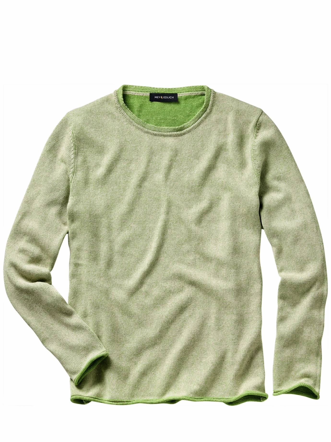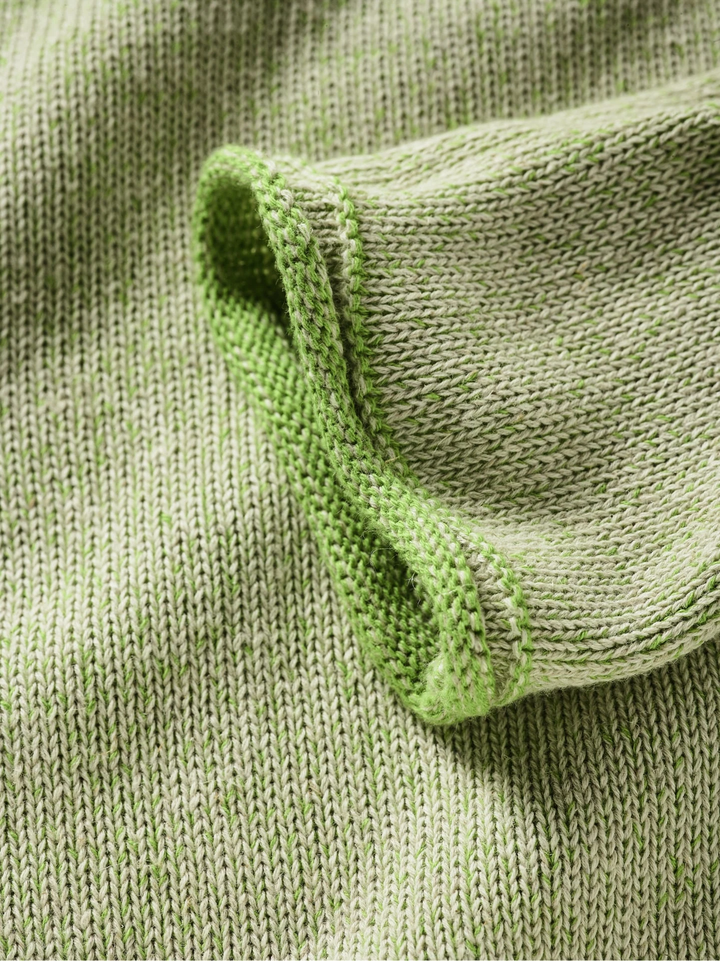 Hier ist aller Anfang grün. Grün, wie grüne Wiese, auf der so gute Ideen entstehen wie ein Pullover aus Baumwolle und Leinen (mit kühlender Wirkung). Perfekt für den Sommer und am liebsten direkt auf nackter Haut getragen.