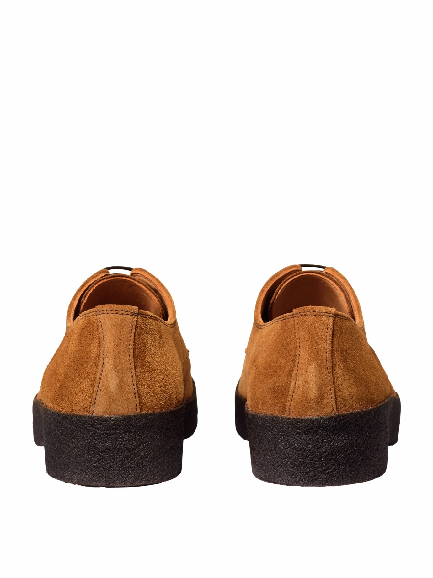 Der Schuh des King of Cool. Er trug ihn nicht nur auf der Leinwand, sondern auch privat. Charakteristisch: das weiche, angeraute Rindleder, die cognac-braune Farbe und die klobige, dabei weiche Kreppsohle. Heute ist sein Schaft etwas flacher, damit die Knöchel bei gutem Wetter freiliegen. Vorne leicht abgerundet, für einen schmaler wirkenden Fuß.