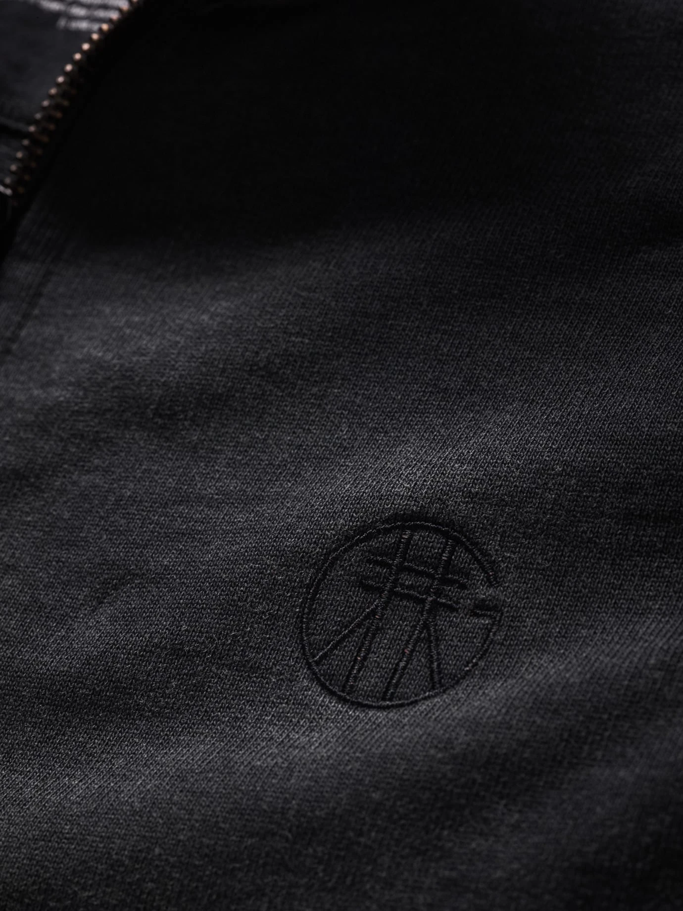 Kohlenstaub bitte nicht ausklopfen. Zumindest bei dieser Sweatjacke, da er akribisch eingearbeitet worden ist in Portugal. Dafür wird der kompakte Baumwollsweat gewaschen, so lange, bis er authentisch rüberkommt und jede Jacke zu einem Unikum macht. Ansonsten typischen GRUBENHELDEN, in beiden Innentaschen mit eingearbeitetem Grubenhemdenstoff, im Nackenbereich ist eine Strophe des Steigerlieds per Siebdruck eingedruckt.