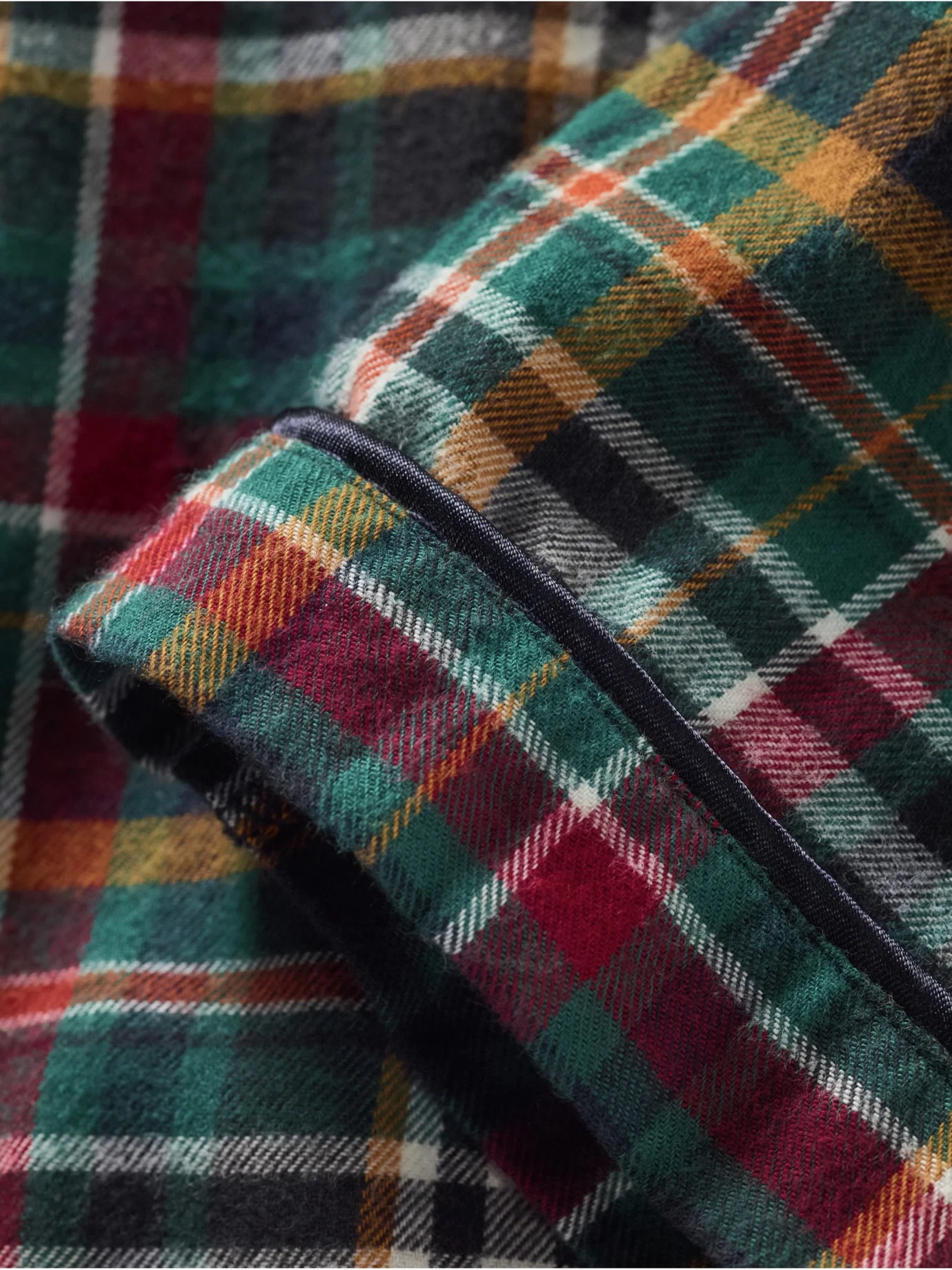 Für Langschläfer und In-den-Tag-hinein-Leber: Das Pyjama-Shirt aus weichem Baumwoll-Flanell hält in Winternächten die Wärme am Körper und macht – dank des farbenfrohen Karos – auch nach dem Aufstehen noch einen guten (weil angezogenen) Eindruck. Ergibt nachts mit passender Pyjama-Pants (22-7366) einen kuscheligen Pyjama.