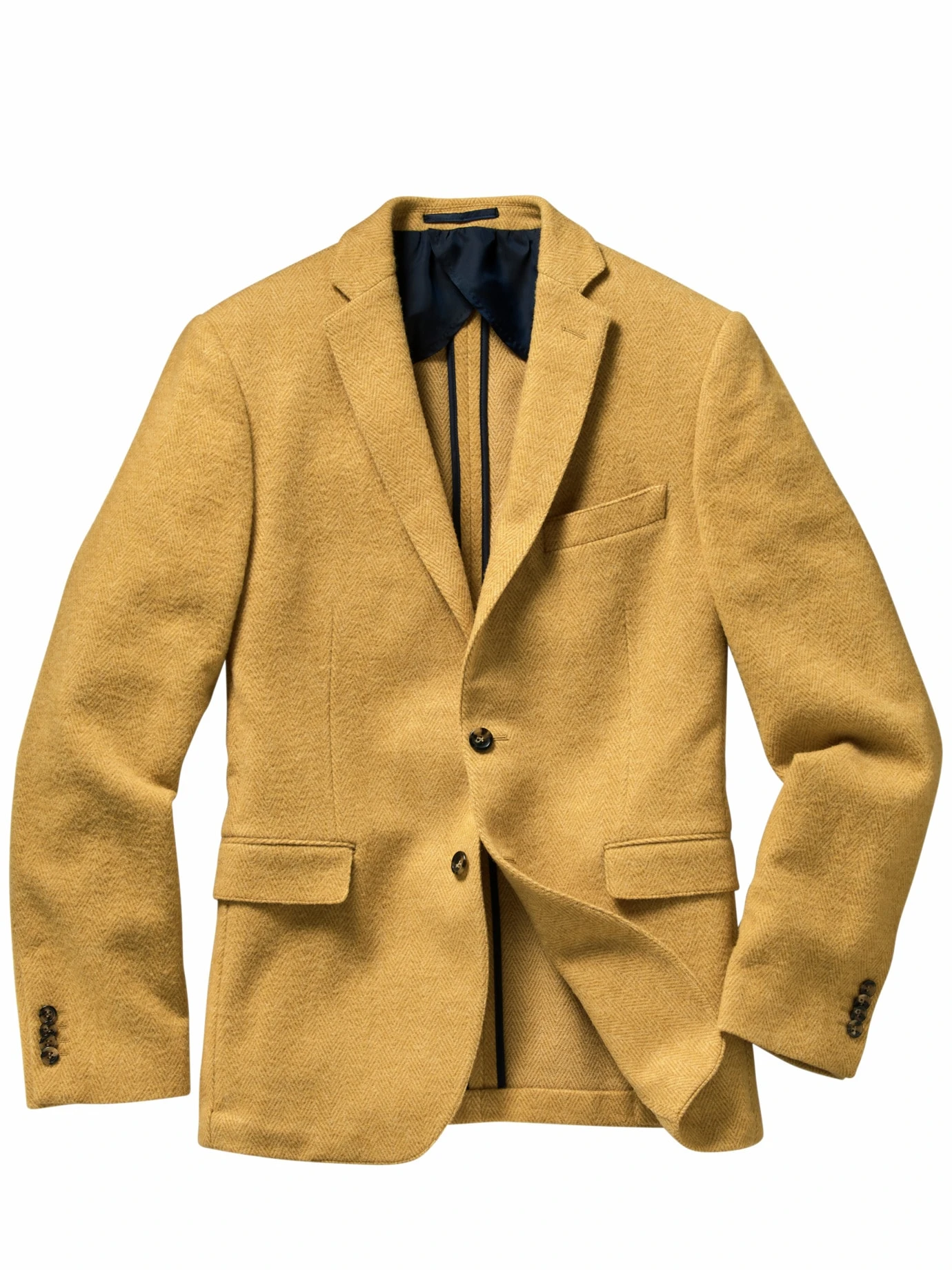 Sonnenbad. Ruck, zuck ist der Vitamin-D-Speicher aufgeladen, der Körper erwärmt und das Gemüt erhellt. Eine erstklassige Inspiration für das farbintensive Sakko: Sein portugiesischer leicht strukturierter Fischgratstoff besteht aus wärmender Wolle, mit genau der richtigen Portion Hightech, die dafür sorgt, dass es seine Form wahrt und nicht kratzt. Denn das Sakko liegt ungefüttert und kälteschützend gleich am Körper, was den Blick auf das besonders präzise verarbeitete Innenleben mit paspelierten Nähten lenkt. Und die Farbe: mit Leuchtkraft. An düsteren Tagen. Und zu besonderen Gelegenheiten.