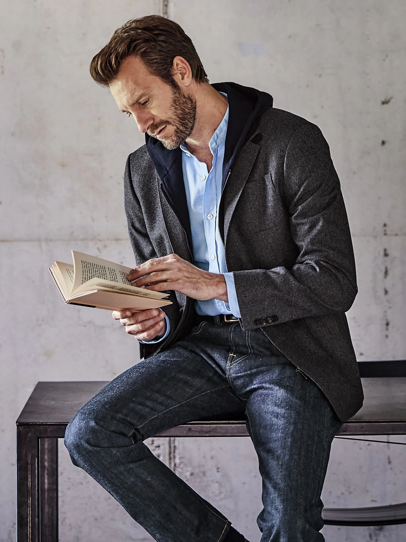 Von denen, die seit Jahrenzehnten prädestiniert sind für die hochwertigsten Tuche Italiens. Die Lanificio Fortex liefert den Schurwollstoff dieses Sakkos. Seine Garne sind fein und hochgedreht und damit erholt sich dieses Sakko schnell von Knittern und Falten. Die nötige Souveränität verleiht die Konstruktion, mit aufgesetzten Taschen, die heraustrennbare Kapuze samt Sturmblende bedient Agilität und Sportlichkeit. Sie trägt einen ähnlich festen Stand wie ein teures Polo, hält also bei Bedarf auch wirklich auf dem Kopf. Gefüttert ausschließlich mit reiner Viskose, dem hochwertigsten aller Futterstoffe. Auf Büffelhornknöpfe zu schließen.