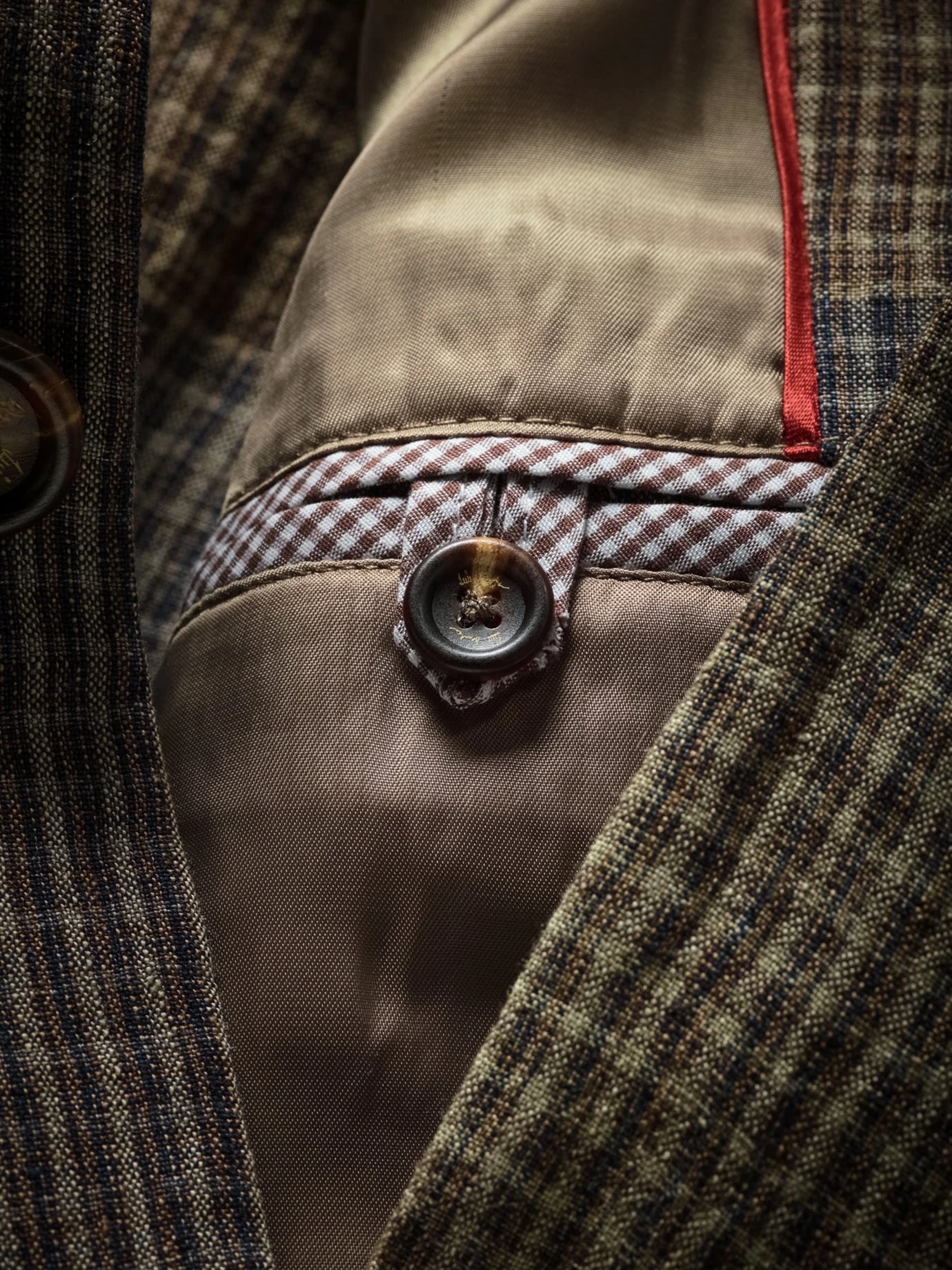 In Südtirol nur an den schönsten Tagen anziehen. Dieses Sakko erinnert an den Smoking Südtirols, ein Stehkragensakko, das Elemente der typisch alpinen Tracht trägt. Luis Trenker interpretiert es allerdings mit Lusandro sehr zeitgenössich. Sein Leinengewebe stammt aus Italien, liebevoll vor Ort in einem feinen Patchwork-Stil zusammengefügt. Interessanter als ein herkömmliches Karo, dazu kombinieren Sie ruhig die Weste Lusebastian (Nr. 24-6477), zur Gartenparty oder Sommerhochzeit reicht aber auch vollkommen ein schlichtes Strickpolo.