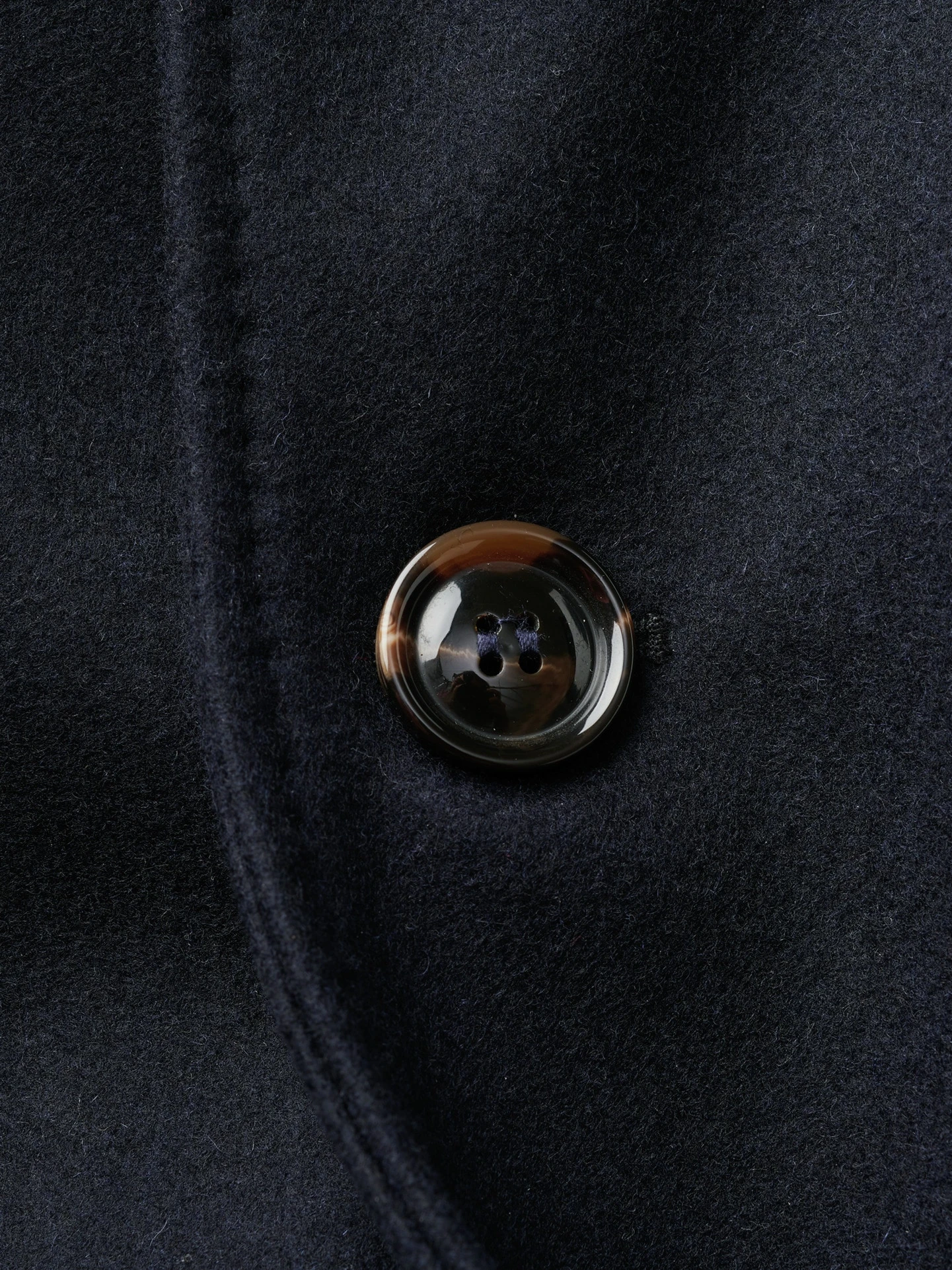 Verarbeitung: Hochwertige Handstichkanten, mit wärmender Wolle (statt kaltem Futterstoff) gefütterte Paspeltaschen, sattbraune Knöpfe und korrekt eingesetzte Schneiderärmel (formt breite Schultern). Dazu eine Brustleistentasche, zwei Innentaschen. Gehschlitz. Regular Fit.