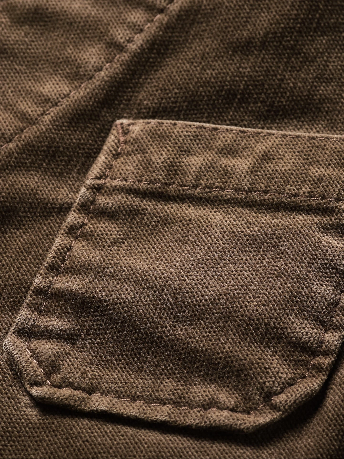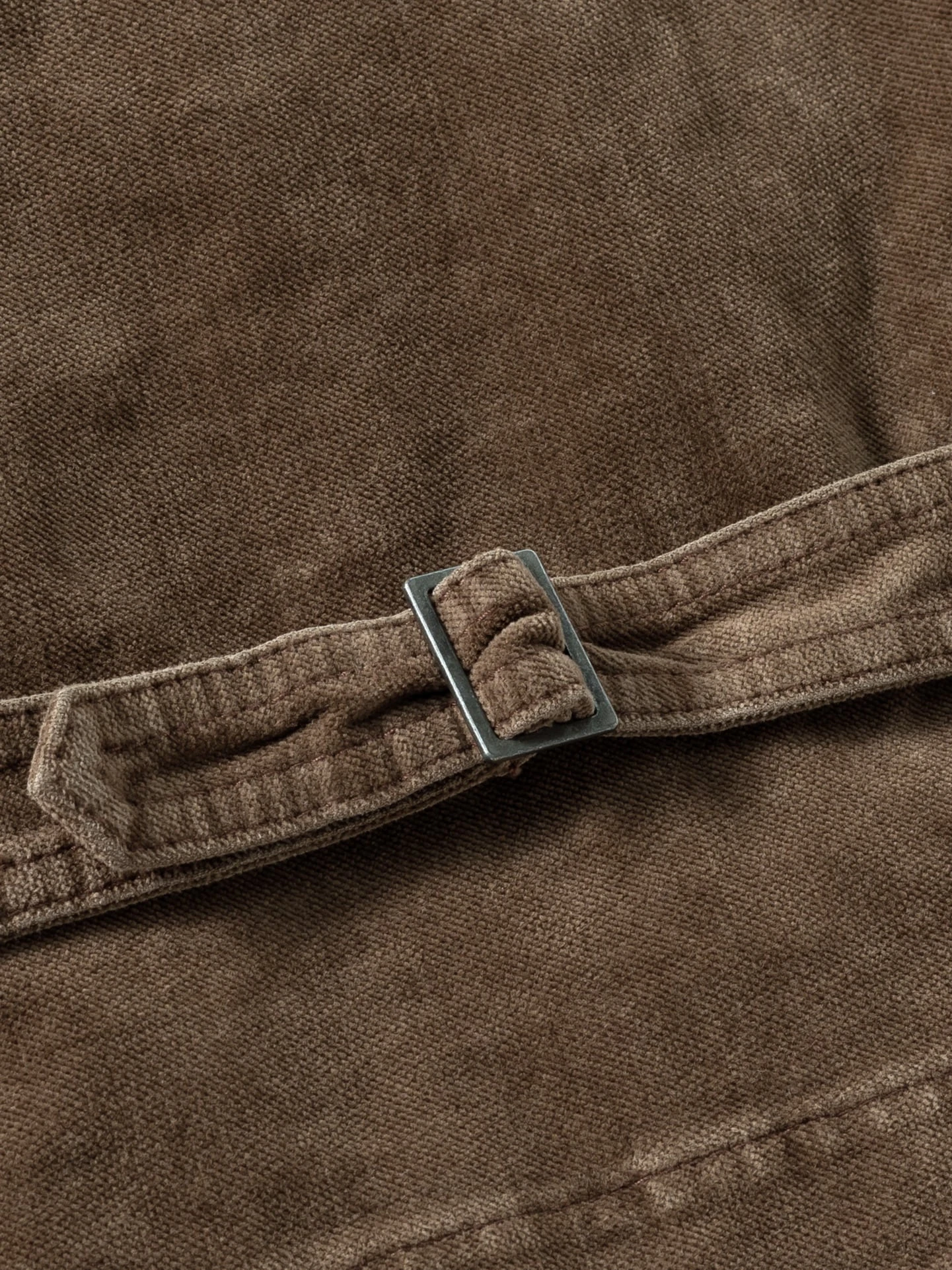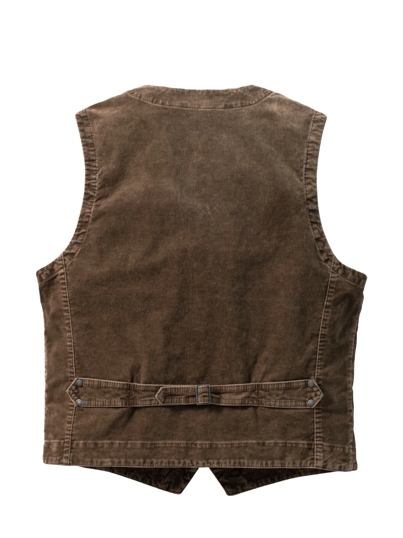 Eine Weste ist immer das My smarter, My lockerer, My kreativer. Eben weniger offiziell als ein Sakko und sieht dabei angezogener aus als ein Hemd allein. Sie bewahrt Platz für ausfallende Bewegungen und große Gesten. Der unempfindliche Samtcord stammt von Velcorex aus Frankreich und erinnert an ehrliche Arbeit. Diese brauchte robuste Kleidung, in der die Lohntüte schnell in einer der Taschen verstaut war. Getragen über Hemd oder Longsleeves, am liebsten zu Denim und auch auf Reisen einplanen – sie knittert nicht und tunt Ihr Outfit schnell, wenn der Weg von Messe via Hotelzimmer samt Espresso zum Abendessen führt.