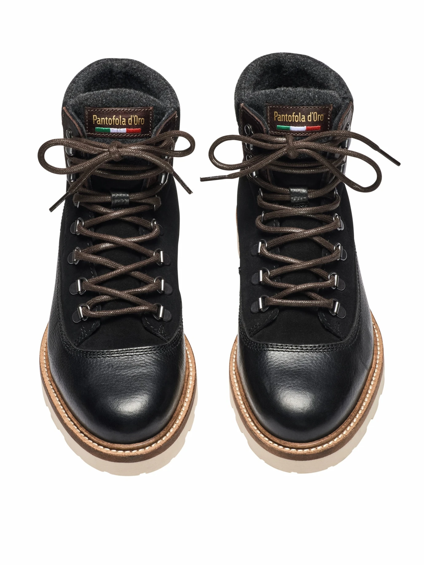 Perfekt für die südlichen Kalkalpen. Und für den Comersee. Er ist ein Hybrid – optisch Bergsteiger, vom Handling eher ein Sneaker. Entweder die Hose drüber tragen oder ganz bewusst mit Knickerbocker und dann pures Bergfeeling genießen.