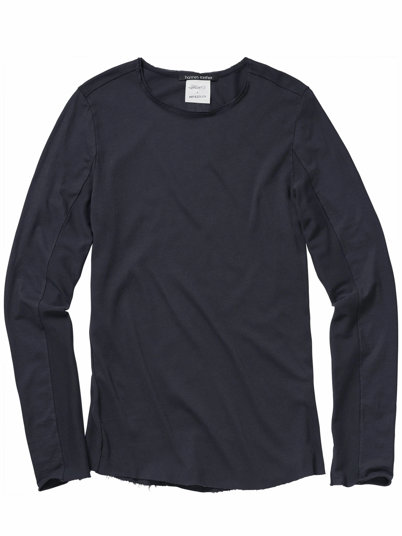 Gut strukturiert. Mit drei unterschiedlichen Strukturen wartet das Longsleeve auf, das hannes roether speziell für Mey & Edlich designt hat. In den feinen Rippen im Vorderteil steckt Bewegungspotenzial, an den Ärmeln kommt der weiche Jersey aus portugiesischer Baumwolle pur zum Einsatz. Die dreidimensionale Waffelstruktur am Rücken tut nicht nur was für die Optik. Zwischen den Stoff und Ihre Haut passt jede Menge Frischluft. roethers signature: die Rollkante am Ausschnitt, die offenkantigen Abschlüsse und die Schlaufe am Nacken. Das angenehm dünne Longsleeve passt unter eine kernige Lederjacke, zur Jeans und Chino. Gefertigt in Portugal.