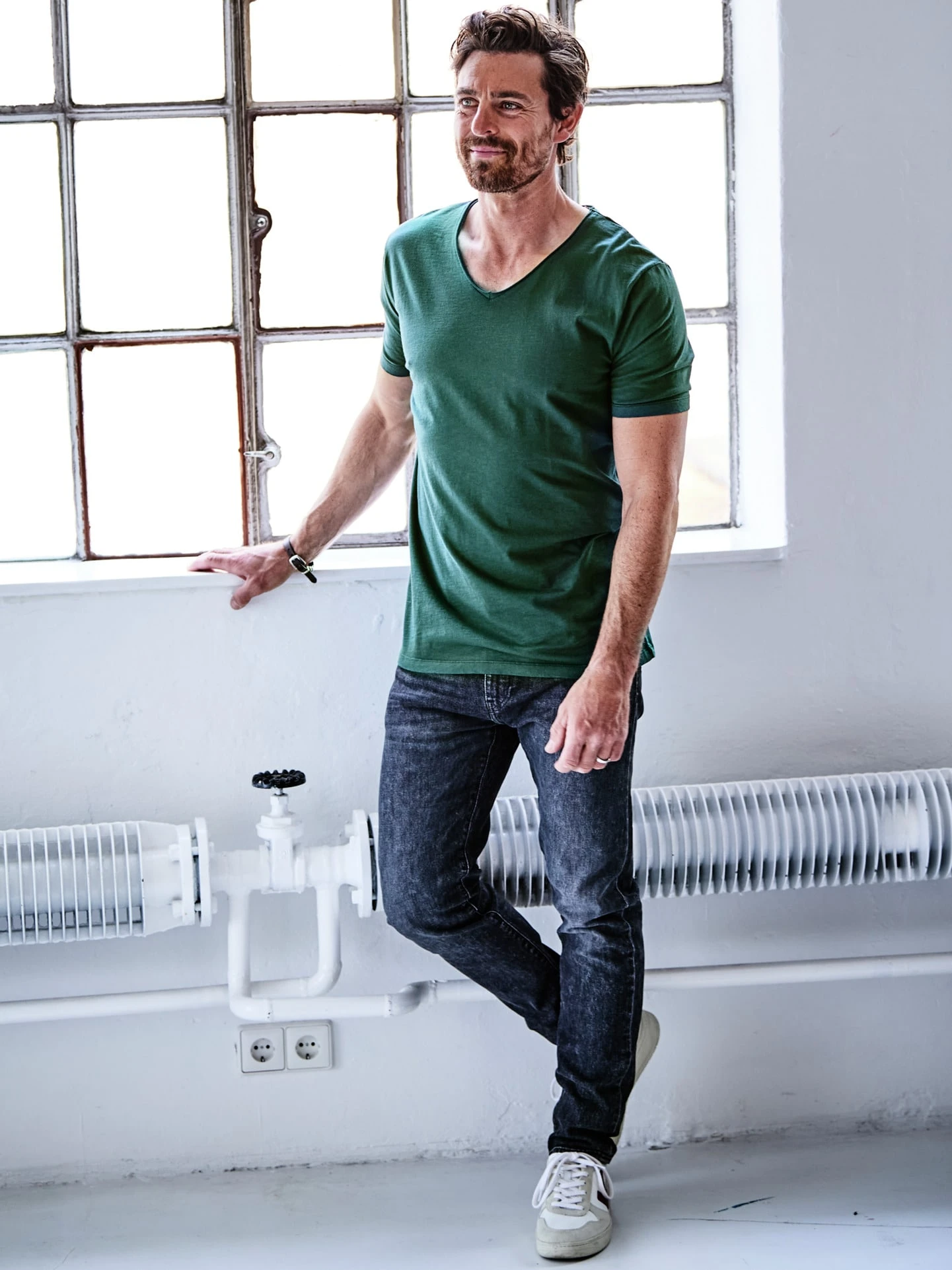Die Qualität steckt im Produkt. Je schlichter ein T-Shirt, umso anspruchsvoller sind wir bei der Auswahl der Qualität. Denn Sie sollen möglichst lange Freude daran haben. T-Shirts wie diese stammen meist aus Portugal und sind aus einem griffigen Jersey gemacht. Dieser ist aus einem unregelmäßigen Flammgarn gewirkt – schön lebendig.