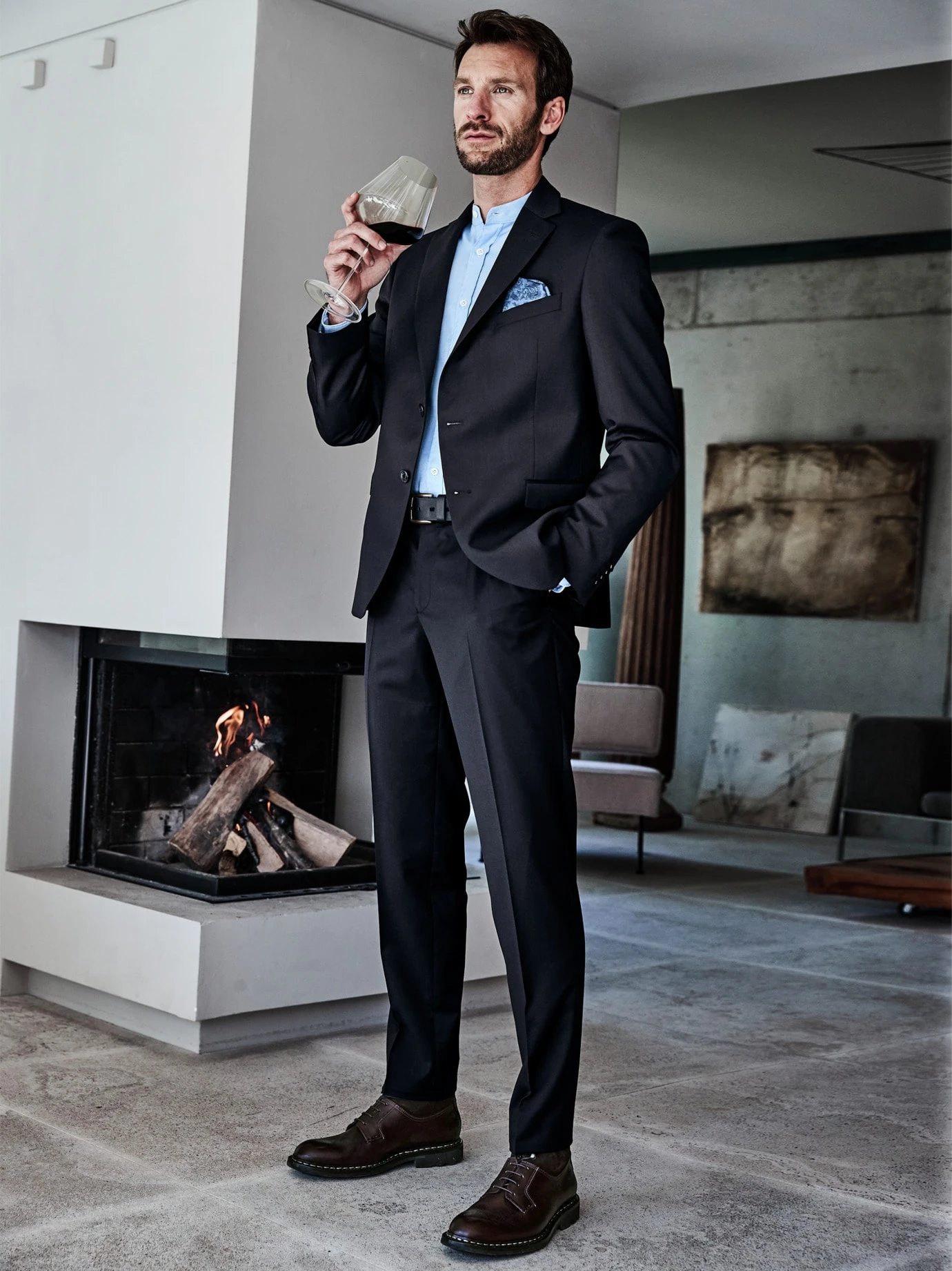 Für gut, für immer, für Sie. Ein Masterpiece wie dieses kauft man nicht. Man investiert: in Material, in Stil, in die Erfahrung eines Webers – und in sich selbst. Der italienische Traditionsweber Marzotto produziert die edelsten Garne und Stoffe seiner Zunft. Für dieses Sakko haben wir ein seidig glänzendes Tuch aus feinsten Schurwollgarnen ausgewählt (Super 110s), die so hochgedreht werden, dass sie ohne Zusatz von Natur aus elastisch sind. Knitter und Falten verschwinden fast von allein. Der moderne Schnitt wirkt smart, aber nicht eng. Die weiche Innenkonstruktion fühlt sich an wie vom Schneider. Komplett als Masterpiece Suit mit gleichnamiger Hose. Mehr Anzug braucht kein Mensch. Mehr Anzüge dann übrigens auch nicht.