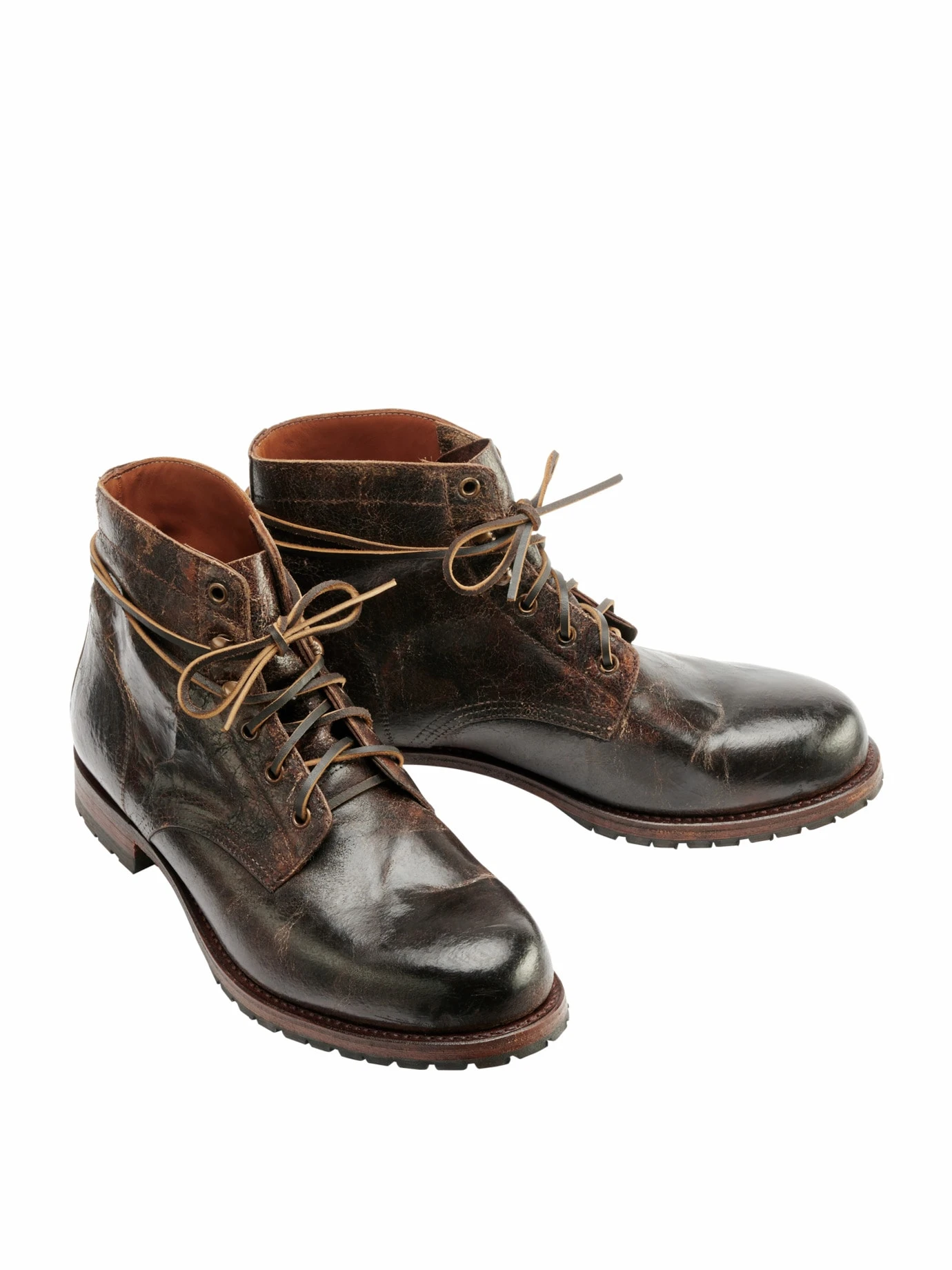 Schuhe von Sendra® zu tragen, ist wie eine Sucht. Sie machen den fühlbaren Unterschied, da fast 90 % (!) ihrer Arbeitsschritte noch von Hand passieren – „hecho a mano“. Wie bei diesem Leder-Boot, der wirkt, als stamme er aus der Gründerzeit. Tatsächlich wird sein nachgiebiges Rindleder in Spanien so lange mit Öl und Wachs eingerieben, bis es die gebrochene Patina trägt, die mit jedem Tragen charakterstärker wird. Lederschnürer um den Fuß binden und zu allem tragen, was kernig ist. Gut auch bei hohem Spann.