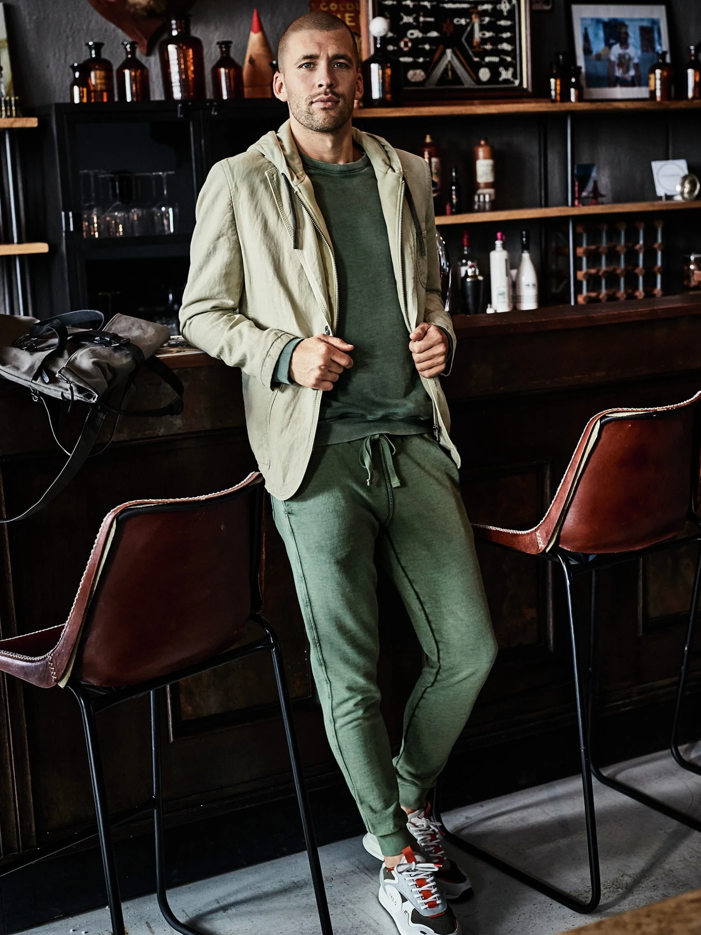 Minimalisten unterwegs. Ehrlich: für Schlüssel, Phone und ein bisschen Plastik braucht es nicht mehr als zwei Taschen. In einem kernigen Sweatshirt wird eine Philosophie draus. Ballast abwerfen. Frei fühlen und sein. Zu Fuß, mit dem Moped, in der Tram oder was immer Sie weiterbringt. Zum Semmeln holen, in den Biergarten, aufs Konzert oder wo immer Sie hinwollen. Überall ist dieser Hybrid weniger als eine Jacke und immer ist er praktischer als ein Shirt, als Hose empfehlen wir Nr. 24-6816-1.