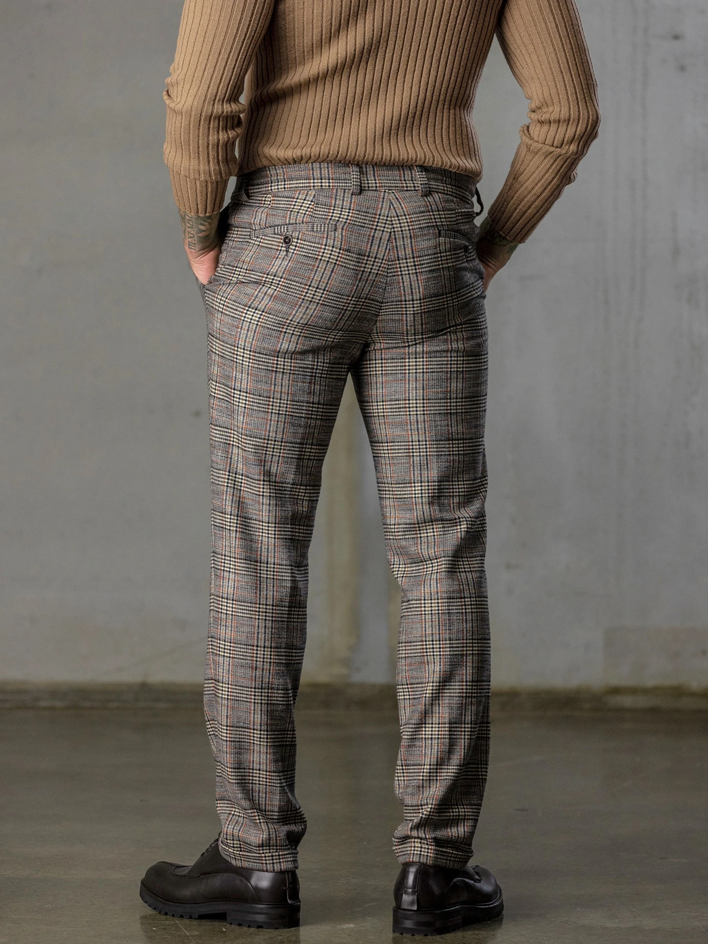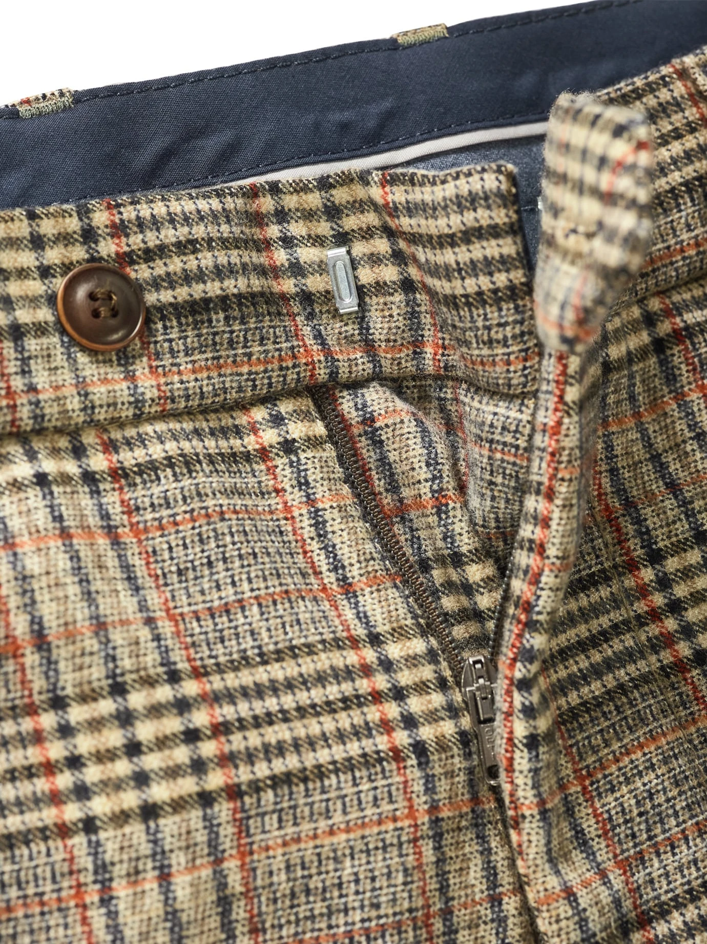 Modemäßig das Beste aus der Weltraumforschung. Dafür sind Ceramica-Teilchen ursprünglich konzipiert und bringen zuverlässigen Temperaturausgleich von bis zu 5 °C in beide Richtungen. In Gänze wirkt die Hose noch immer wie die korrekte Super-140, sie schlägt allerdings Schurwolle um Längen: waschbar, bequem, bügelfrei. Auf dem Erdboden in Geschäftsterminen wichtig: das kompatible Glencheck-Karo.