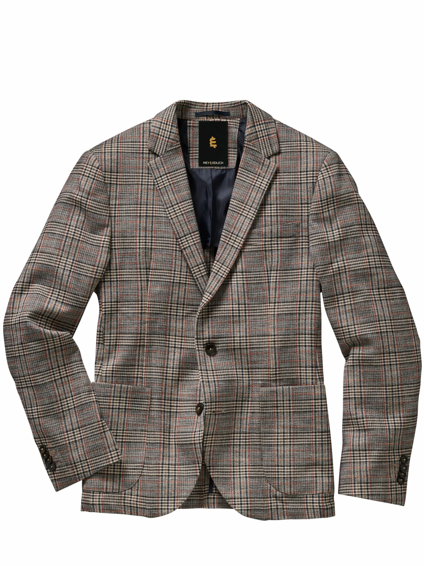 Erfolgreich angedockt. Das Sakko komplettiert die Mondmission-Hose (Nr. 24-6102) zum Anzug oder erkundet alleine die Hosenwelt. Die ursprünglich für die Weltraumforschung entwickelten, temperaturausgleichenden Ceramica-Teilchen haben sich bewährt. Der portugiesische Stoff sieht aus wie Schurwolle, ist aber einfacher im Handling, da waschbar und bügelfrei. Dank des Elasthan-Anteils macht das Sakko jedes Bewegungsexperiment mit. Das Glencheck-Karo passt zu vielen Hemden und Geschäftsterminen.