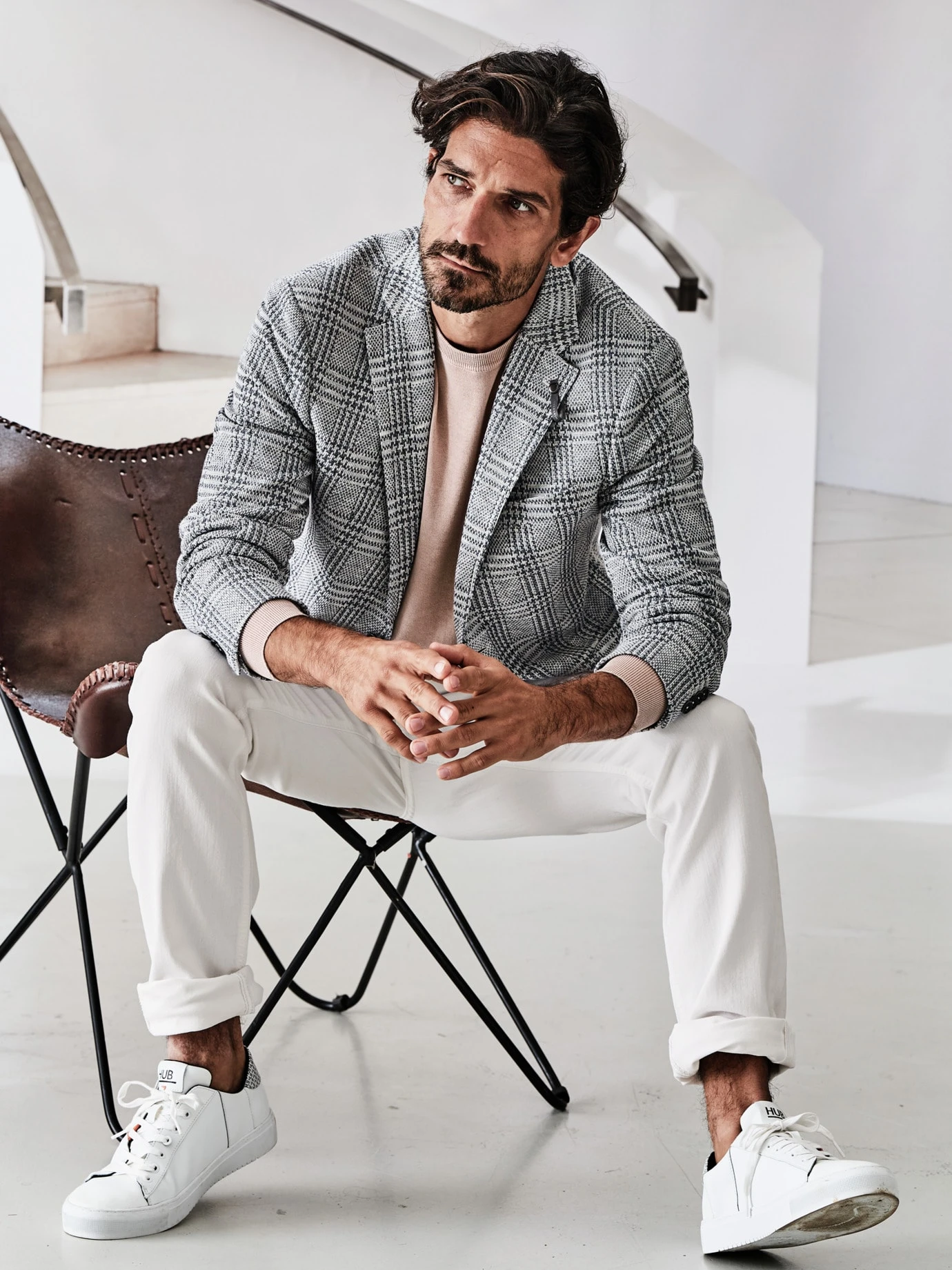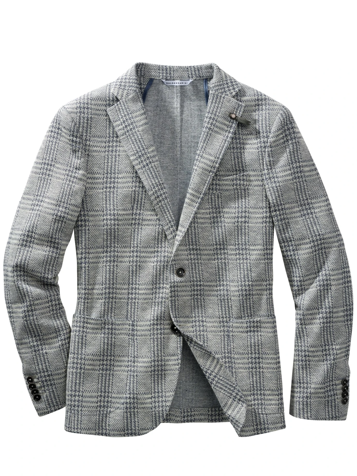 Bequem wie eine Sweatjacke. Korrekt wie ein Sakko. Baldessarini setzt auf einen angenehmen Jersey aus Italien, der bei jeder Bewegung nachgibt. Vermutlich werden Sie das Sakko auf Ihren Schultern kaum spüren (wiegt 500 Gramm), es verzeiht Ihnen sogar, sollten Sie es im ICE zum Kopfkissen umfunktionieren (knitterfrei). Aufwendig vom Konfektionär gearbeitet, zu erkennen an den Innentaschen, die bei einem nahezu ungefütterten Sakko eine Herausforderung sind, dank Schulterfutter sitzt es korrekt. Zur Freiluft-Vernissage mit Jeans und Shirt, bei Online-Konferenzen zu Chino und Hemd.