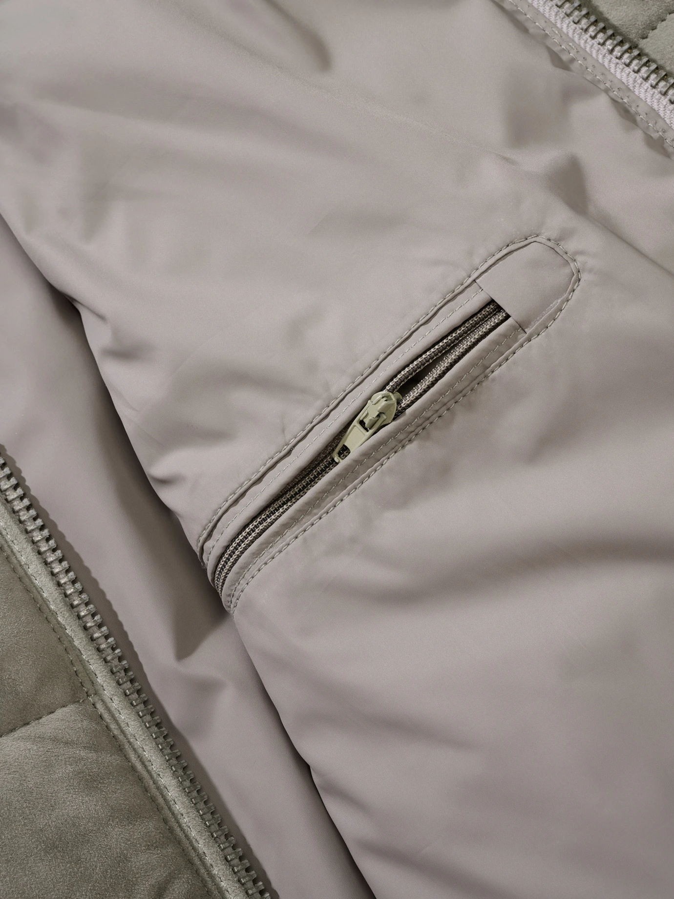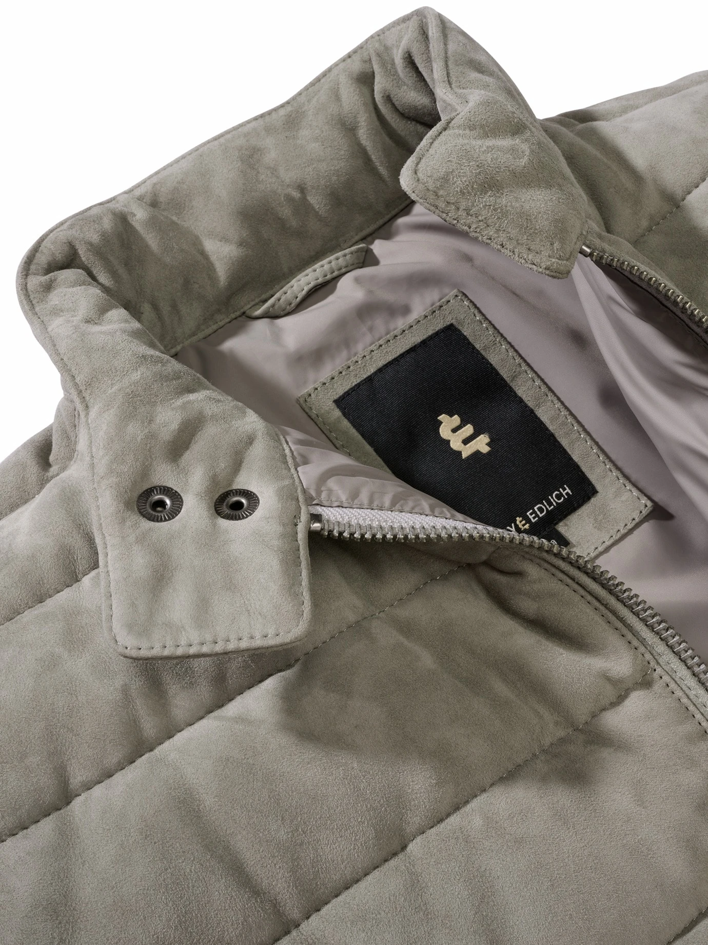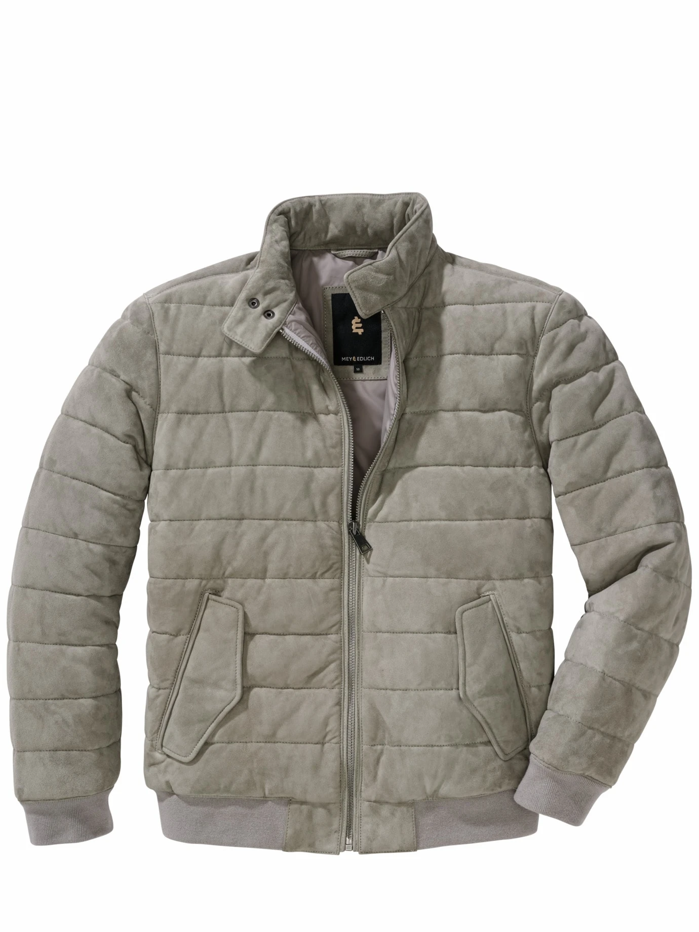 (Fast) ausgefallen: London Fog. Ein heller, aber unempfindlicher, warmer Grauton, der für Lederjacken noch ungewöhnlich ist, da der Kontrast zu schwarzer Hose häufig zu hart ist. Diese ist gearbeitet aus butterweichem Ziegenvelours. Zusätzlich gesteppt, damit harte Winterstürme eintreffen können. Strickbündchen verhindern, dass der Wind drunterkriecht. Die Blinddrücker halten den Kragen gut verschlossen. Zusätzlich ist das Leder fein imprägniert, damit hält die Jacke Nebel samt leichtem Sprühregen ab. Mehr nicht. Mehr will aber auch keiner.