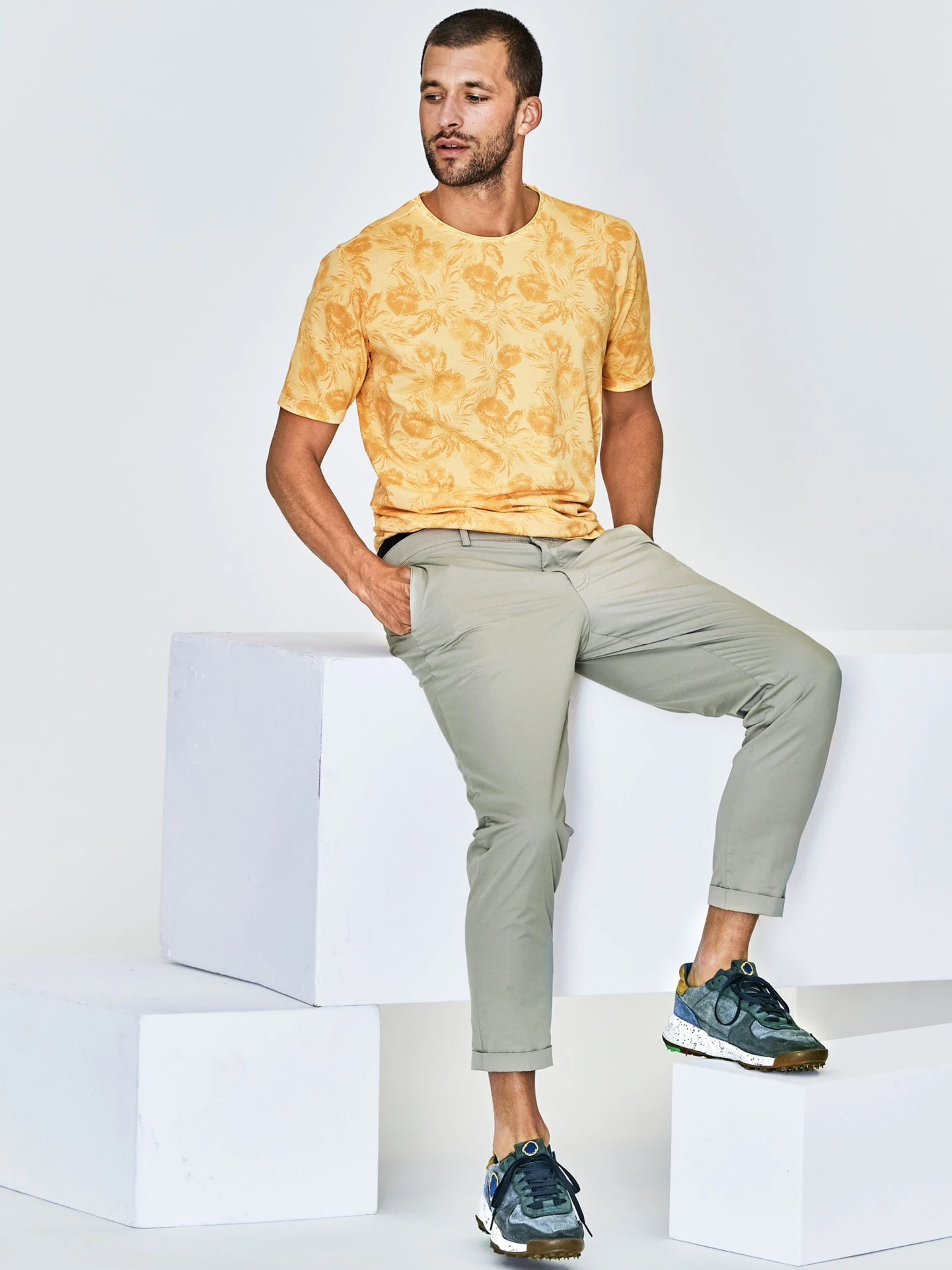 Nachhaltiges Comeback. Wenn ein Kleidungsstück aus Baumwolle ausrangiert wird, muss es noch lange nicht am Ende sein. Die besten der geliebten Stücke schaffen es in die Wiederverwertung. Aus Alt und Neu im Mix wird ein strapazierfähiges Garn gesponnen. Für Chinos wie diese: leicht, angenehm im Griff und bestens verarbeitet. Der verkürzte Schnitt bis knapp über den Knöchel bringt schöne Schuhe voll zur Geltung.
