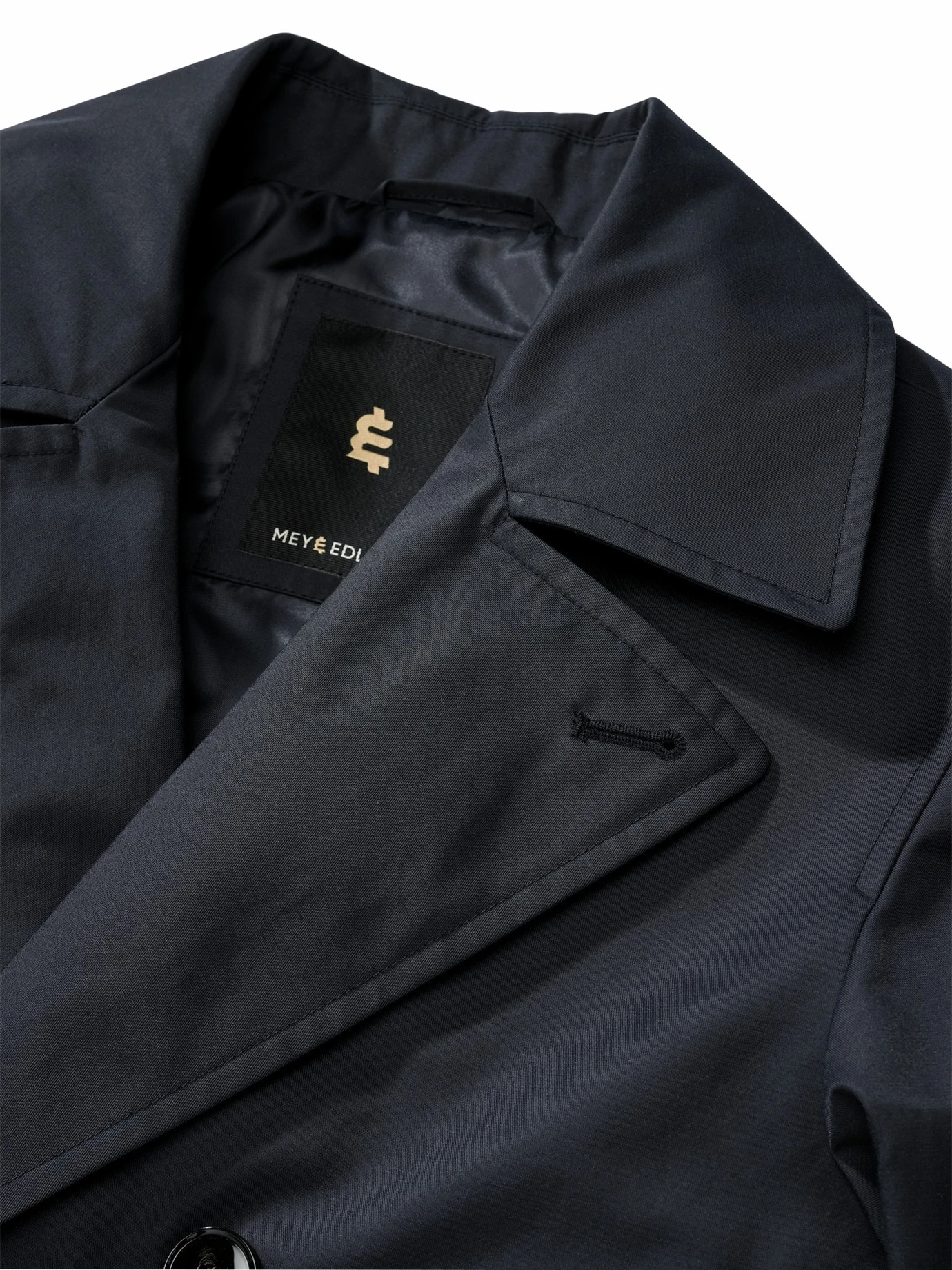 Dem Ansehen nach hundertpro ein Caban. Das kann jeder Seebär von altem Schrot und Korn bestätigen, auch wenn hier, statt schwerer Wolle, eine Hightech-Baumwollmischung den eleganten Doppelreiher leicht und luftig dem Sommer zuschreibt. Der Kragen mit großem Revers fällt gut und kann bei Bedarf hochgestellt werden, um Winden zu trotzen. Der businesstaugliche Überzieher ist ein wenig verkürzt zum Original und im Inneren edel mit einem leichten Vollfutter ausgestattet. Stark im New Businesslook mit Jeans und Pullover, noch edler mit Hemd und Chino. Dazu standesgemäß ein Paar schicker Lederschuhe, sportlicher mit Sneakern.