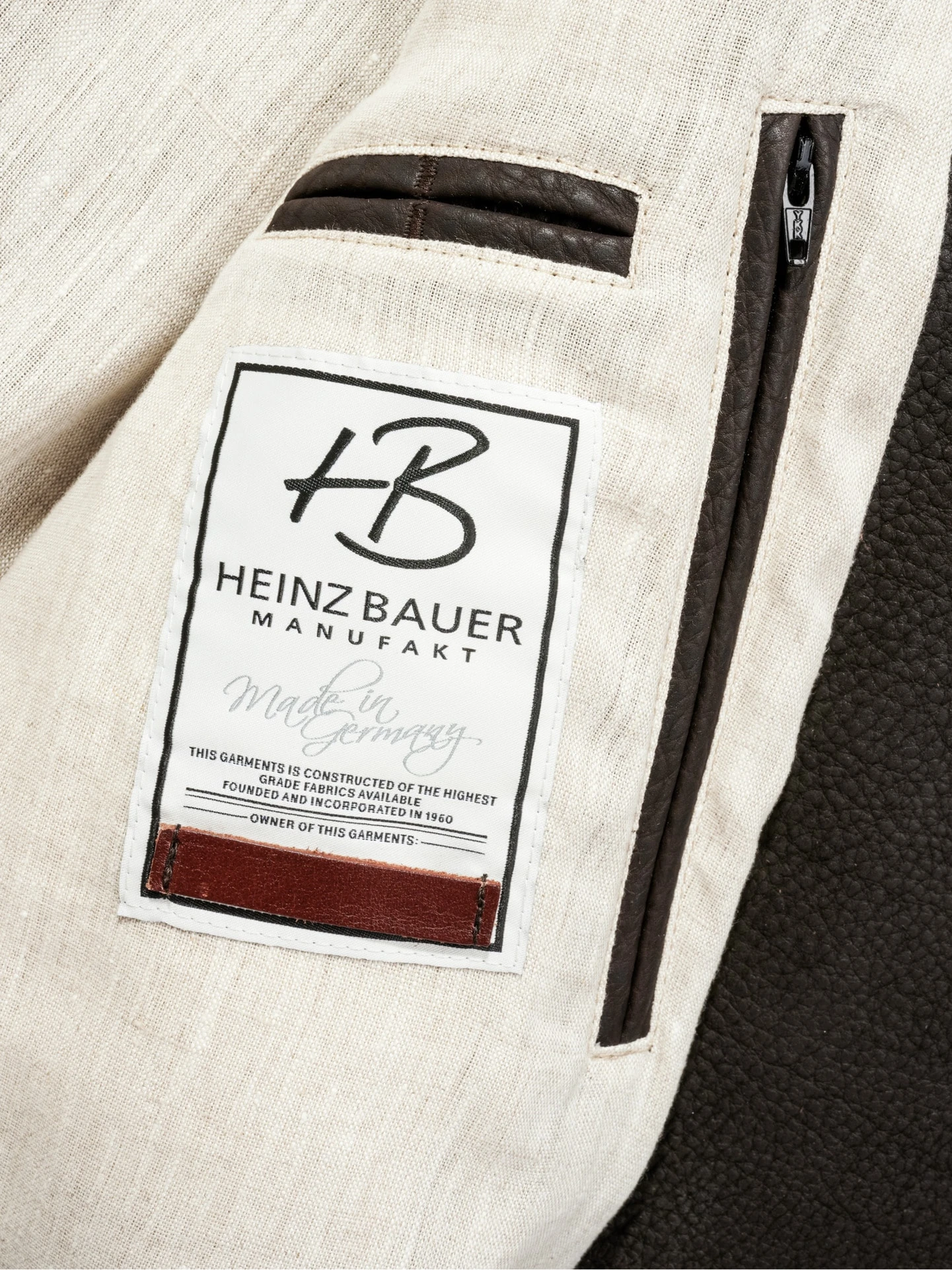 Das Leben ist nicht perfekt. Ihre Jacke auch nicht. Das Besondere an der Ninja-Lederjacke ist das Leder, aus dem sie gemacht ist: echtes Bisonleder aus Nordamerika. Es ist widerstandsfähig, weich und bequem. Die Tiere weiden auf naturbelassenem Land und sind nicht überzüchtet, ihr Fell wächst ungleichmäßig und ist Grund für die sehr grobe, charakteristisch unperfekte Narbenstruktur von Bisonleder. Die Jacke selbst ist ein echtes Original der Heinz Bauer Manufakt.