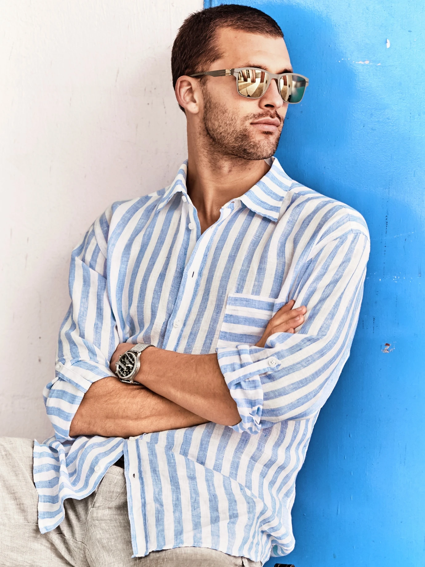 Für Reisen mit kleinem Gepäck. Das reine Leinen knittert angenehm und so gewollt, dass Sie gar nicht auf die Idee kämen, das Hemd zu bügeln. Der Schnitt ist bequem weit und ersetzt unter extremen Bedingungen die Klimaanlage, da der Stoff Ihnen mit jeder Bewegung Luft zuwedelt. Sie waschen es im Handwaschbecken, trocknen es über dem Stuhl oder notfalls flatternd am Rucksack. Es schützt Ihre Arme vor Moskitos und, wenn der Sonnenschutz mal versagt, vor weiterem Übel. Auf der Suche nach Abenteuer, Freiheit und Selbstbestimmung lassen sich die Ärmel praktisch krempeln und feststellen.