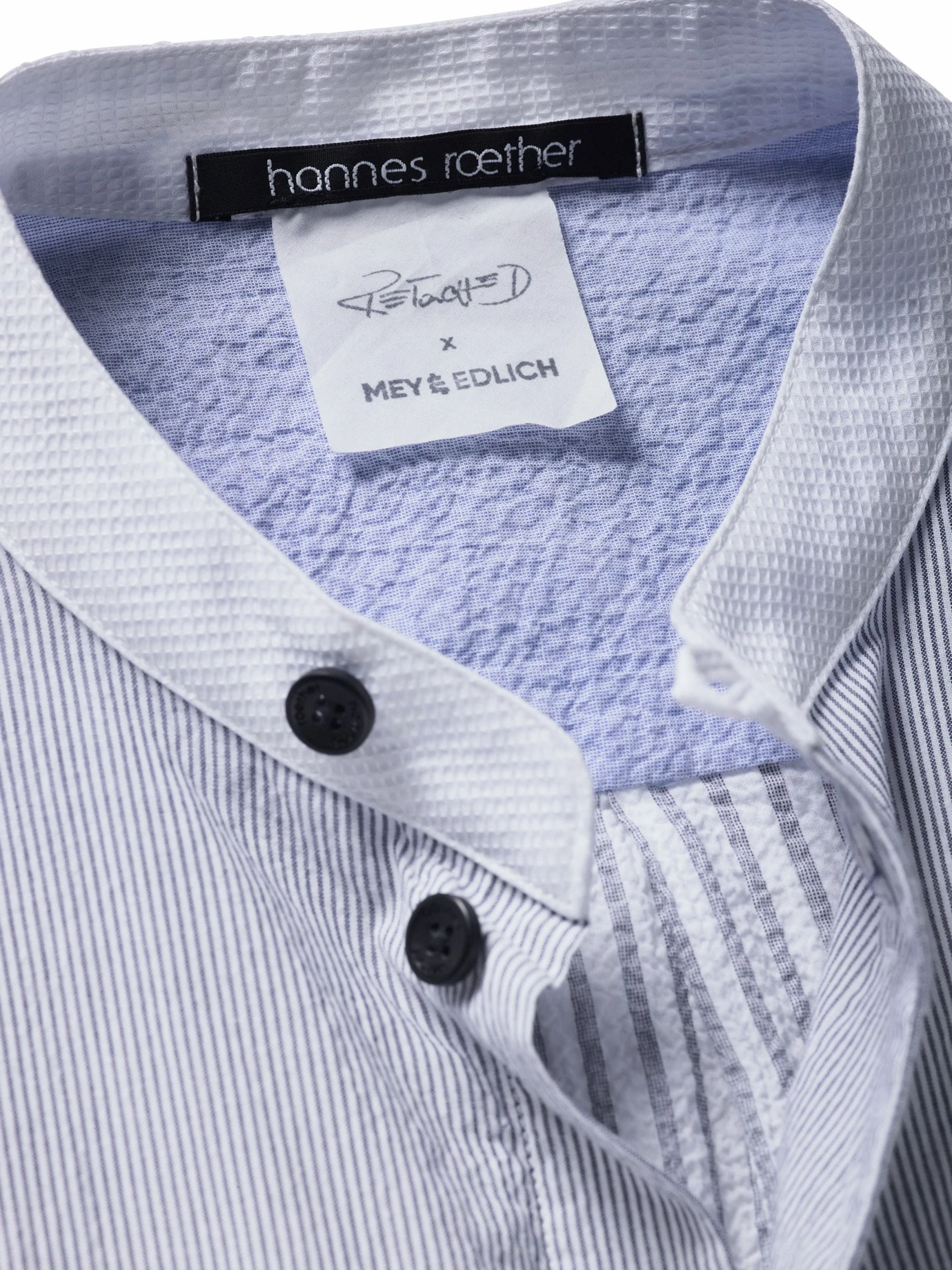 Nachhaltiges Design à la roether. Er denkt den Patchwork-Begriff konsequent weiter. Die Stoffe teilen sich ihren Ursprung, gewebt aus viel Baumwolle, die dem Hemd eine angenehme Luftigkeit verleiht, der Rest Elasthan sorgt fürs entspannte Tragegefühl. Anschließend gewaschen, so trägt es trockenen Griff und unempfindliches Handling.