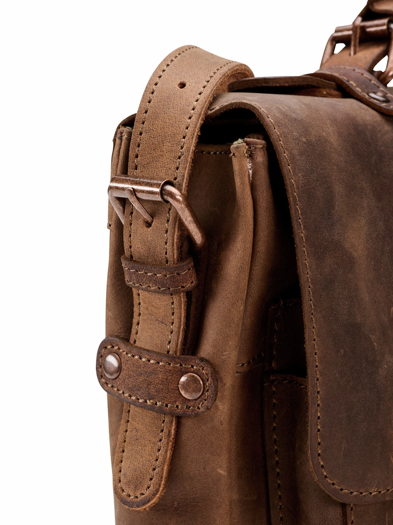 Wächst mit ihren Aufgaben. Kein Täschchen, mehr ein Gebrauchsgegenstand. Das natürlich gegerbte, geölte und gewachste Antikleder darf hart rangenommen (auch aufs Pult geknallt) werden. Mit ihren Reserven in der Tiefe wächst die kleine Aktentasche auf eine Größe, die ein 13-Zoll-Laptop und einen mittelgroßen Ordner schluckt.