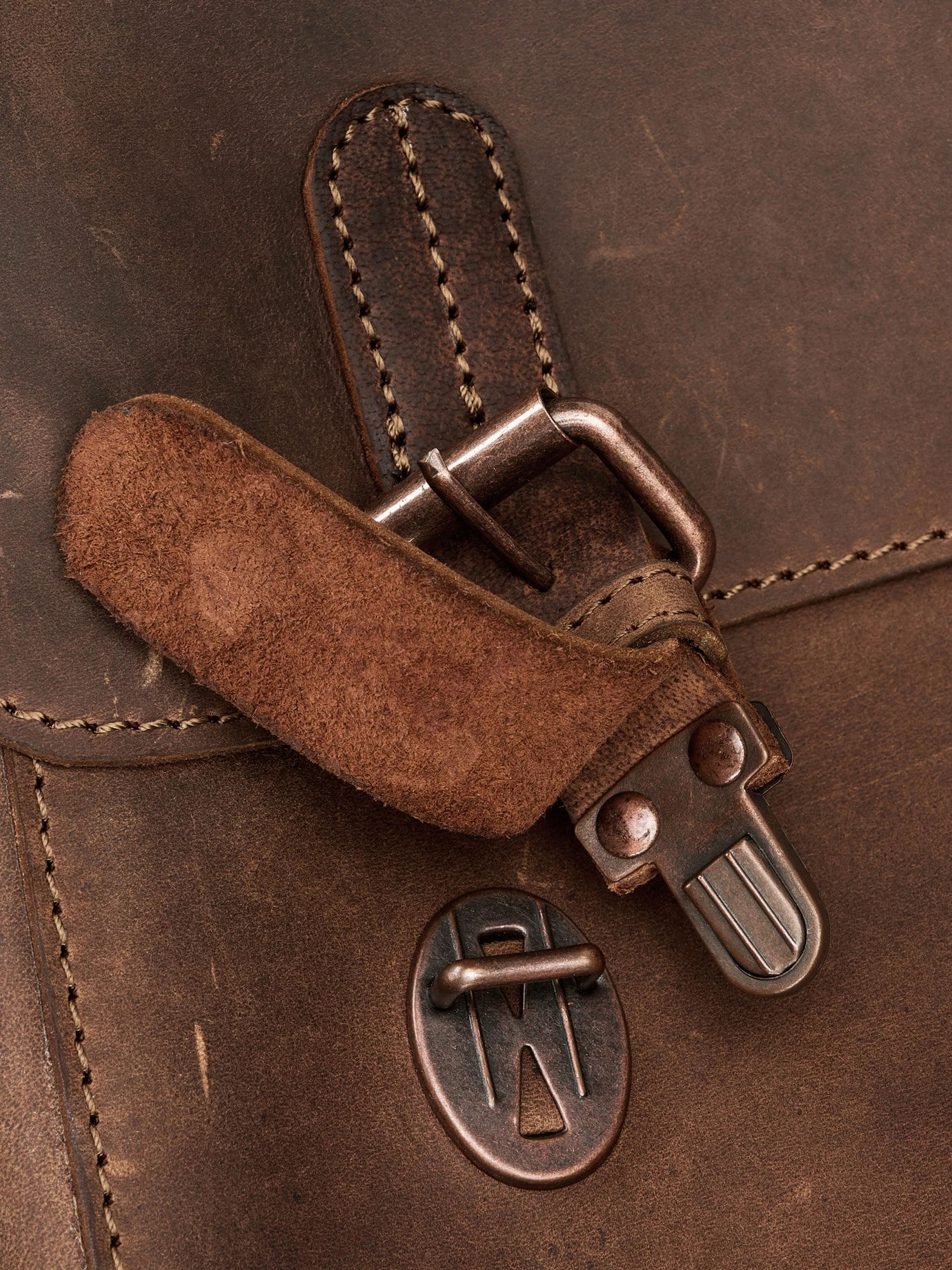 Material: Maße: 38 cm x 31 x 13 cm (B x H x T). Obermaterial: Rindleder. Futter:100 % Baumwolle. Imprägnieren mit Öl oder Lederfett.
