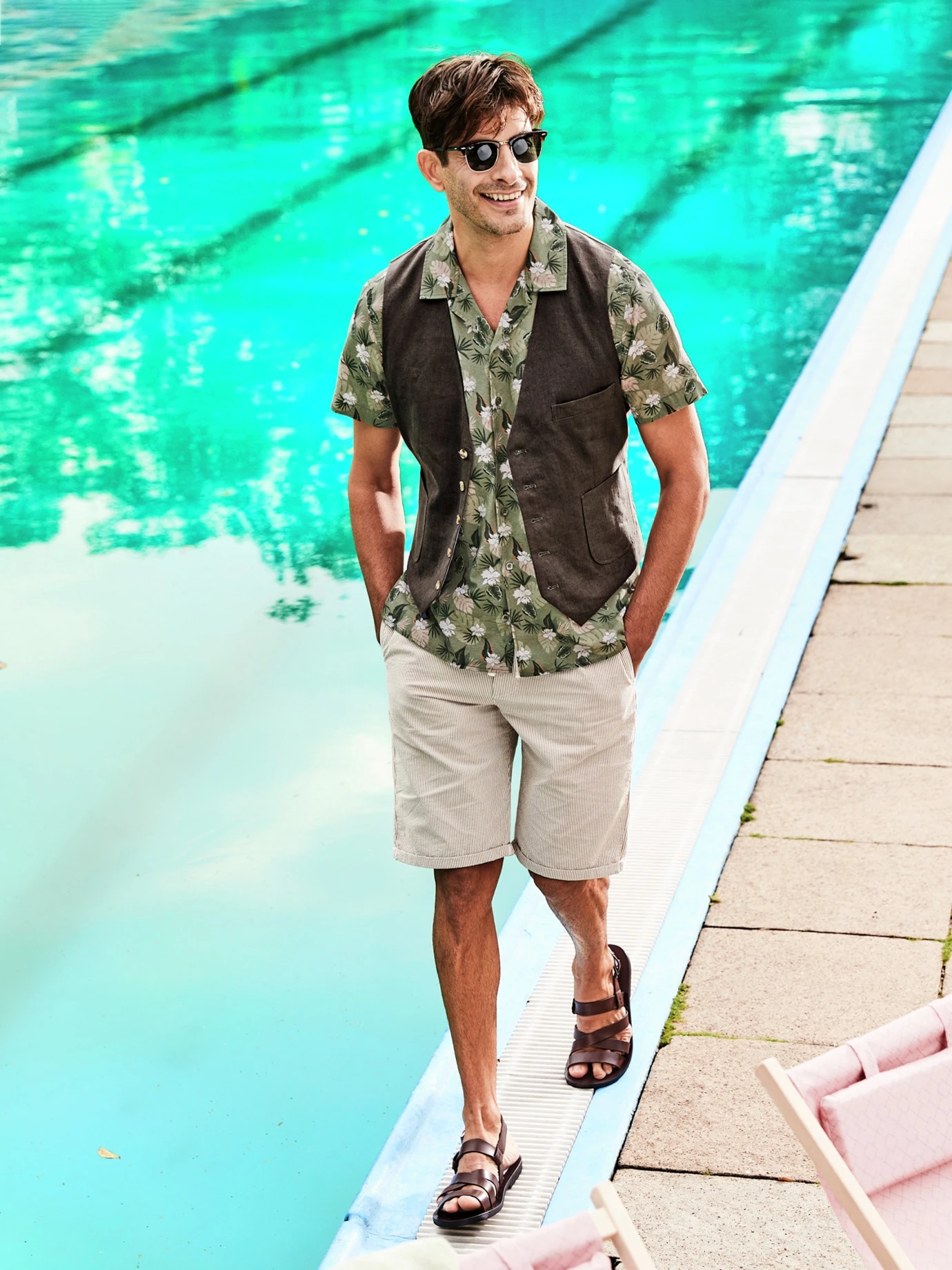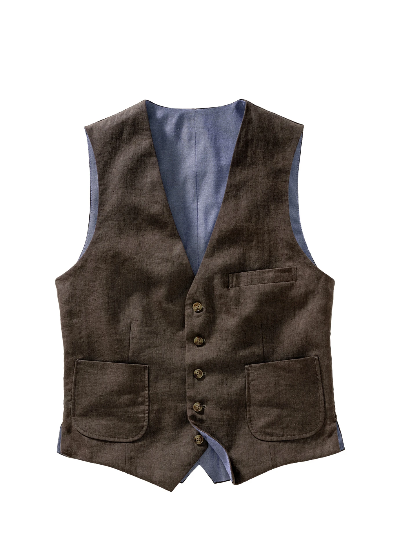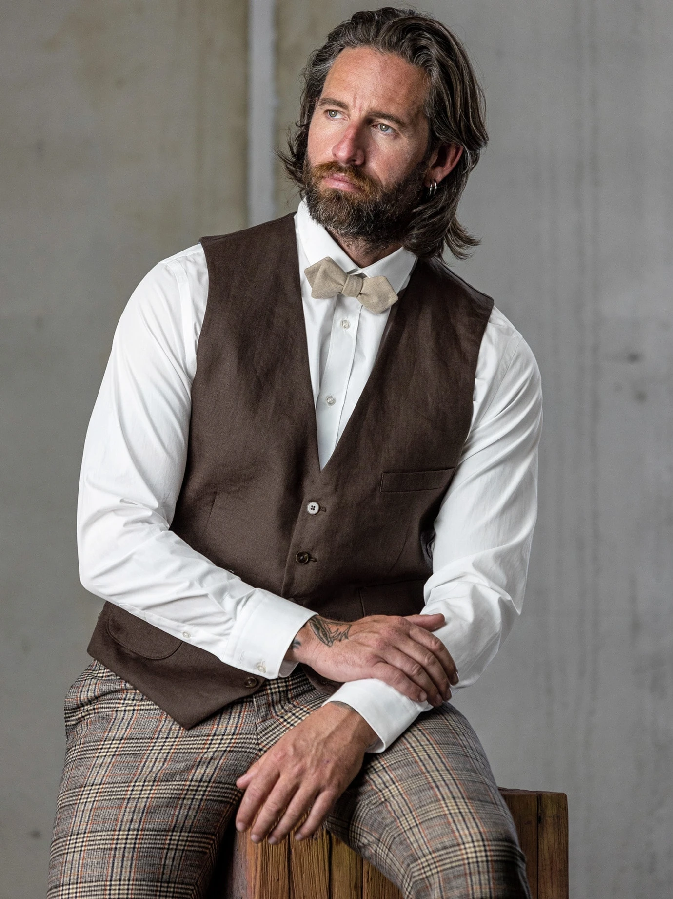 Aus dem Wetteifern ums schönste Sommersakko steigen Sie mit dieser Weste einfach aus. Außerdem müssen Sie dann nicht so schwitzen. Eine vielseitige Weste wie diese ist – egal, ob mit T-Shirt oder mit aufgekrempeltem Hemd – im Sommer einfach perfekt. Aus purem Leinen gefertigt, das Sie auch an den Tagen gute Laune behalten lässt, an denen andere mehr Wasser aussondern, als sie zu sich nehmen können. Mit wenig Aufwand erzielen Sie mit ihr ein höchstes Maß an Wirkung. Optimal zur Leinenhose, alle anderen Hosen funktionieren aber auch.