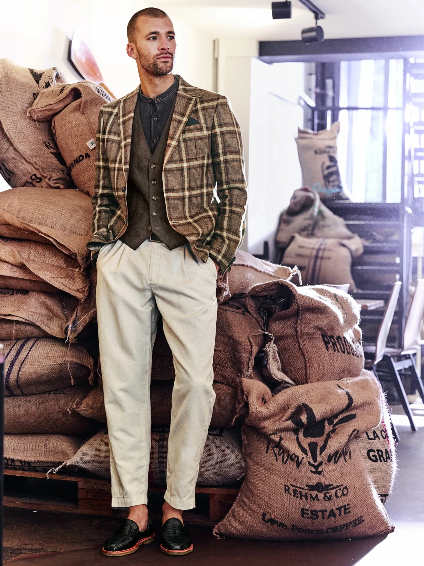 Verarbeitung: Drei Taschen außen. Stoffgleicher Rücken, für den besseren Sitz mit unsichtbar eingearbeitetem Gummiband im Rücken. Regular Fit.
