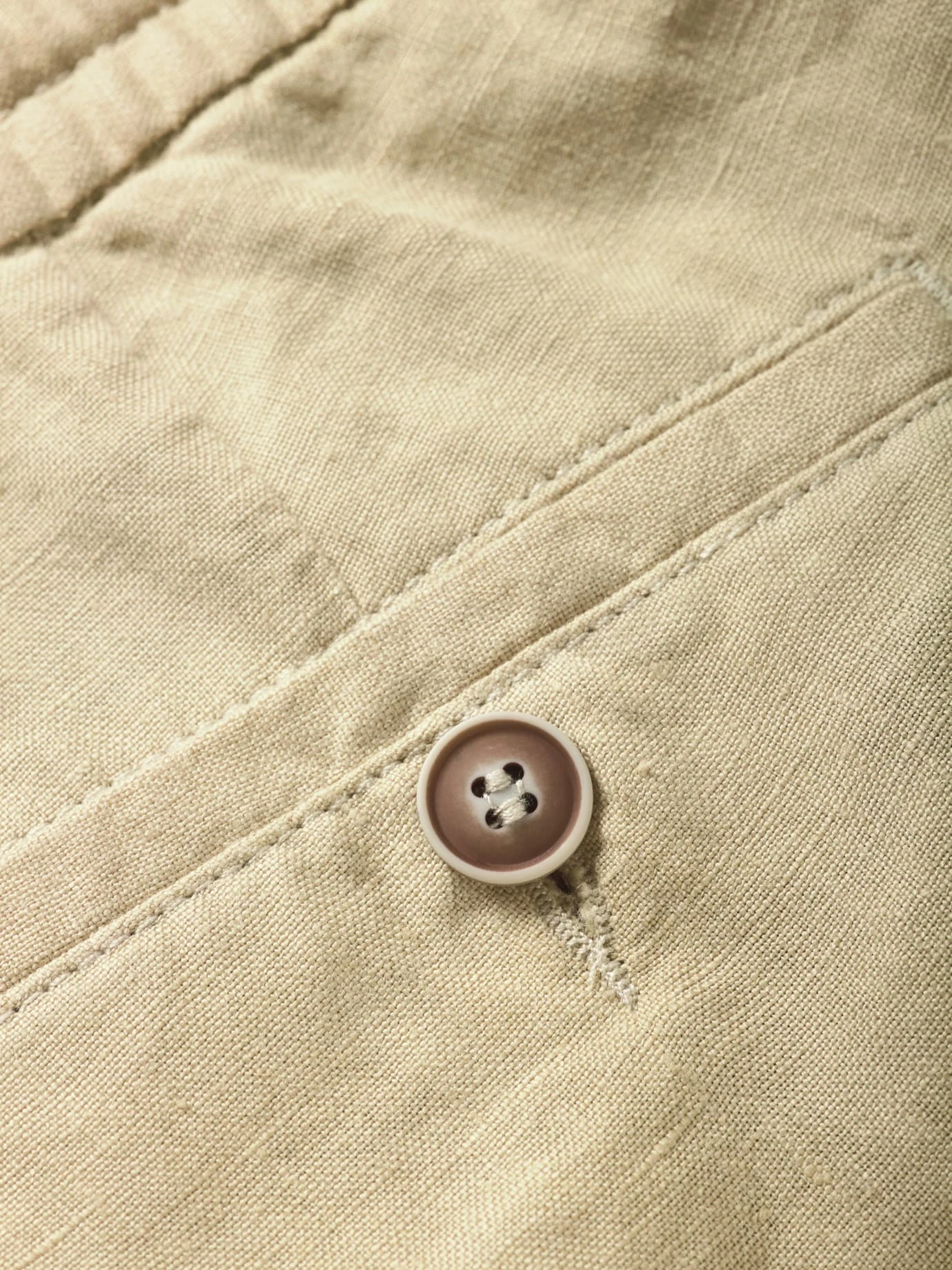 Verarbeitung: Zwei seitliche Taschen, zwei knöpfbare hinten. Bindeband. Regular Fit.