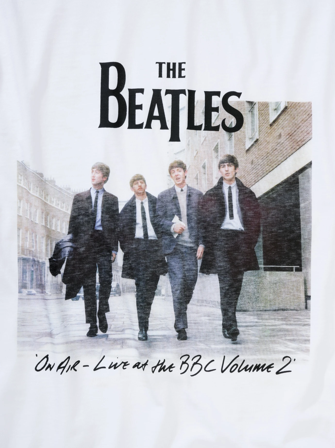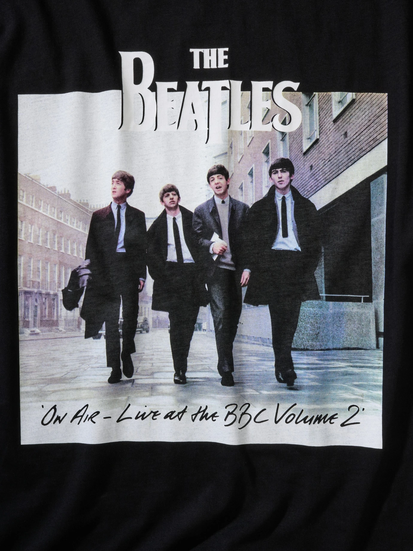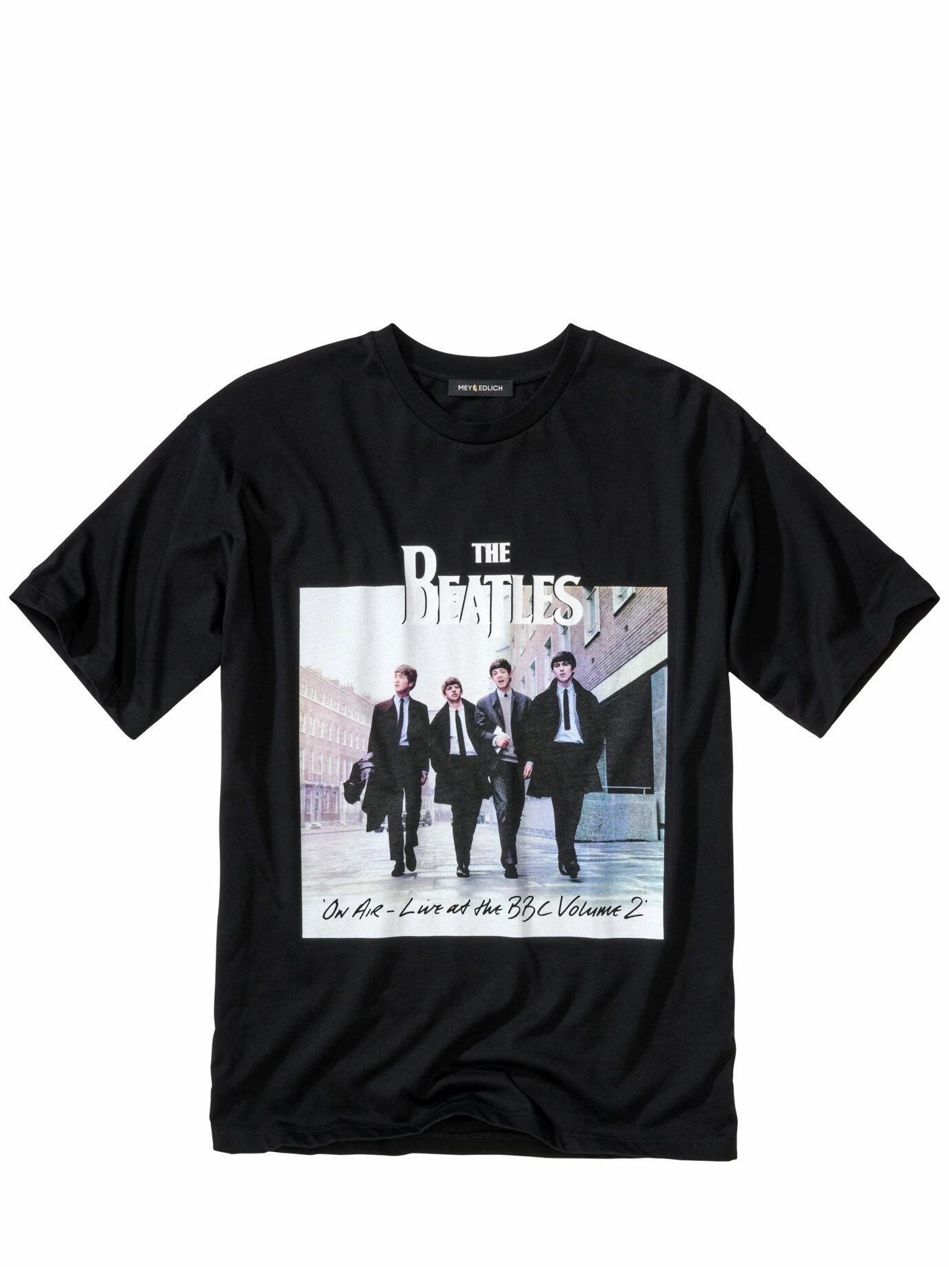 Bislang unveröffentlicht. Als 2013 das Album „On Air – Live at the BBC Volume 2“ erschien, gab es on top 22 bislang unveröffentlichte Titel wie auch 23 Sprachaufnahmen. Geht gut auf die Ohren, auf der Haut machen sich die Jungs in den strengen Anzügen auch ordentlich. Bedruckt auf Baumwolljersey, anständig vernäht, sodass das Shirt nicht verdreht. Das Halsbündchen trägt einen Hauch Elasthan, so wahrt es die britische Form.