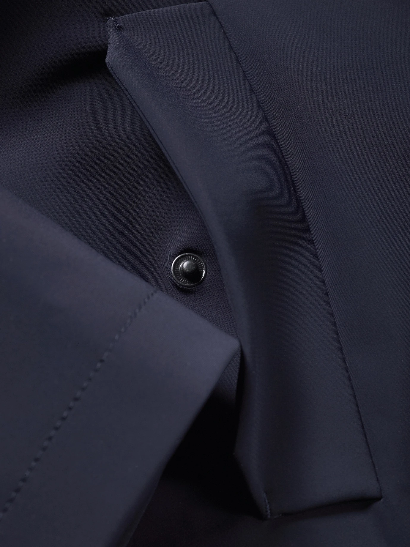 Eine Macht überm Anzug. Von Anfang an entwickelt, um auf dem Weg zum Job vor sämtlichen Widrigkeiten zu schützen. Der Power Move Coat bedient sich modernster Hightech-Materialien. Er ist wasserabweisend und winddicht, als Anzugmantel für Geschäftsreisen zudem konsequent auf Dynamik getrimmt: leicht (wiegt nur 400 Gramm), ungefüttert, flexibel, knitterarm und bei Bedarf auf ein taschenfreundliches Maß zusammenfaltbar. Dank des geraden Schnittes mit den verdeckten Leisten wirkt er clean und damit zeitlos. Mögliche Zweckentfremdungen sind eingeplant, im Zusammenhang mit Jeans, Pulli und Sneakern wirkt er, offen getragen, sportlich.