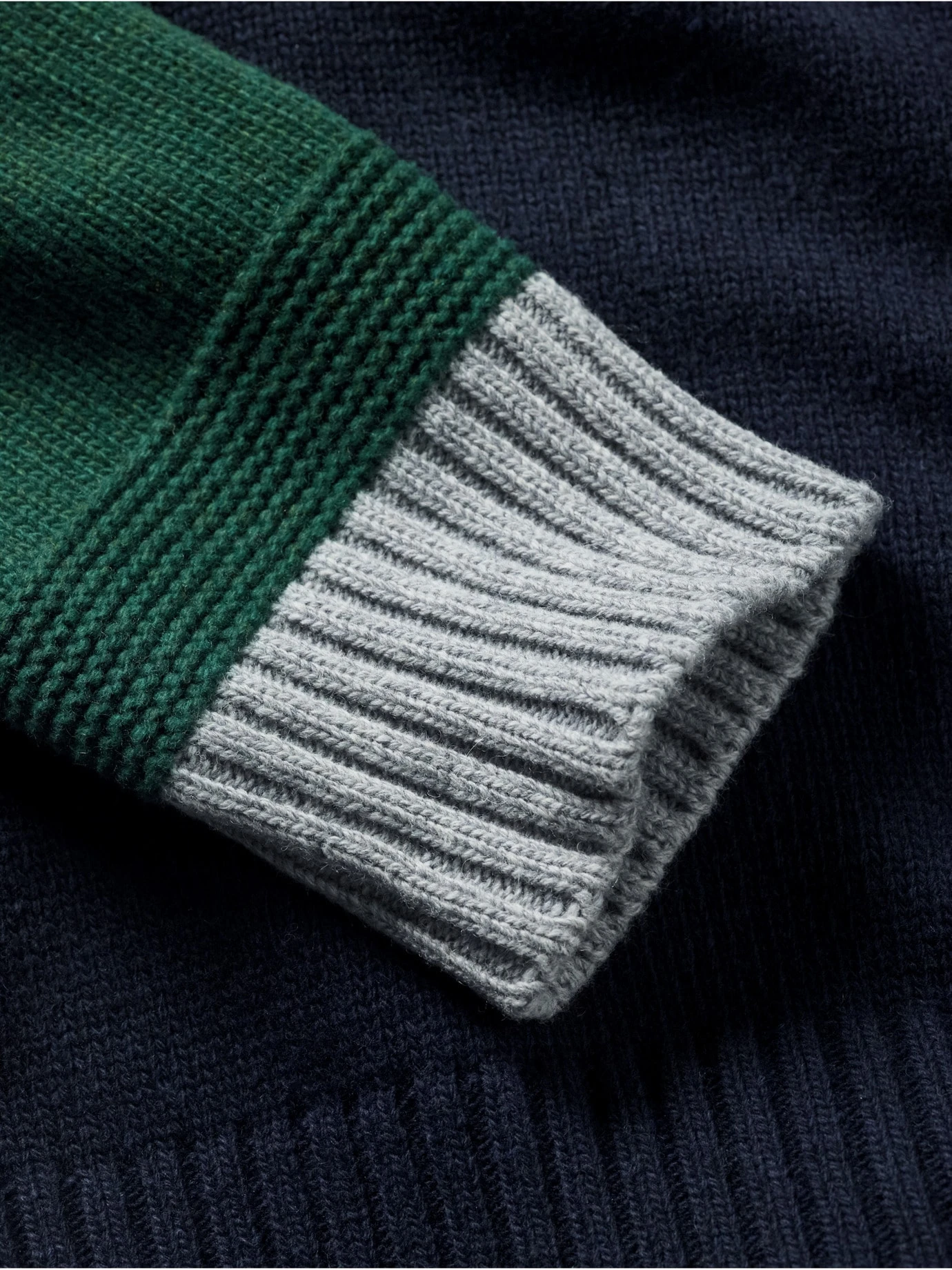Club der Kletterer. Sportlich. Stilbewusst. Zugehörig. Der überdimensionale Buchstabe und spezielle Hausfarben signalisieren seit Harvard ein Corporate- und College-Design, das Blousons, Shirts und Sweater schmückt. Passt und überzeugt auch bei diesem Pullover: Das Trenker-T wurde zusätzlich aufgestrickt und ist daher erhabener als der Rest aus wärmespeichernder und atmungsaktiver Wolle. Deren Eigenschaften sorgen für Outdoor-Tauglichkeit, High-Tech-Garn hält in Form. Das Colourblock-Trio bekräftigt die Individualität.