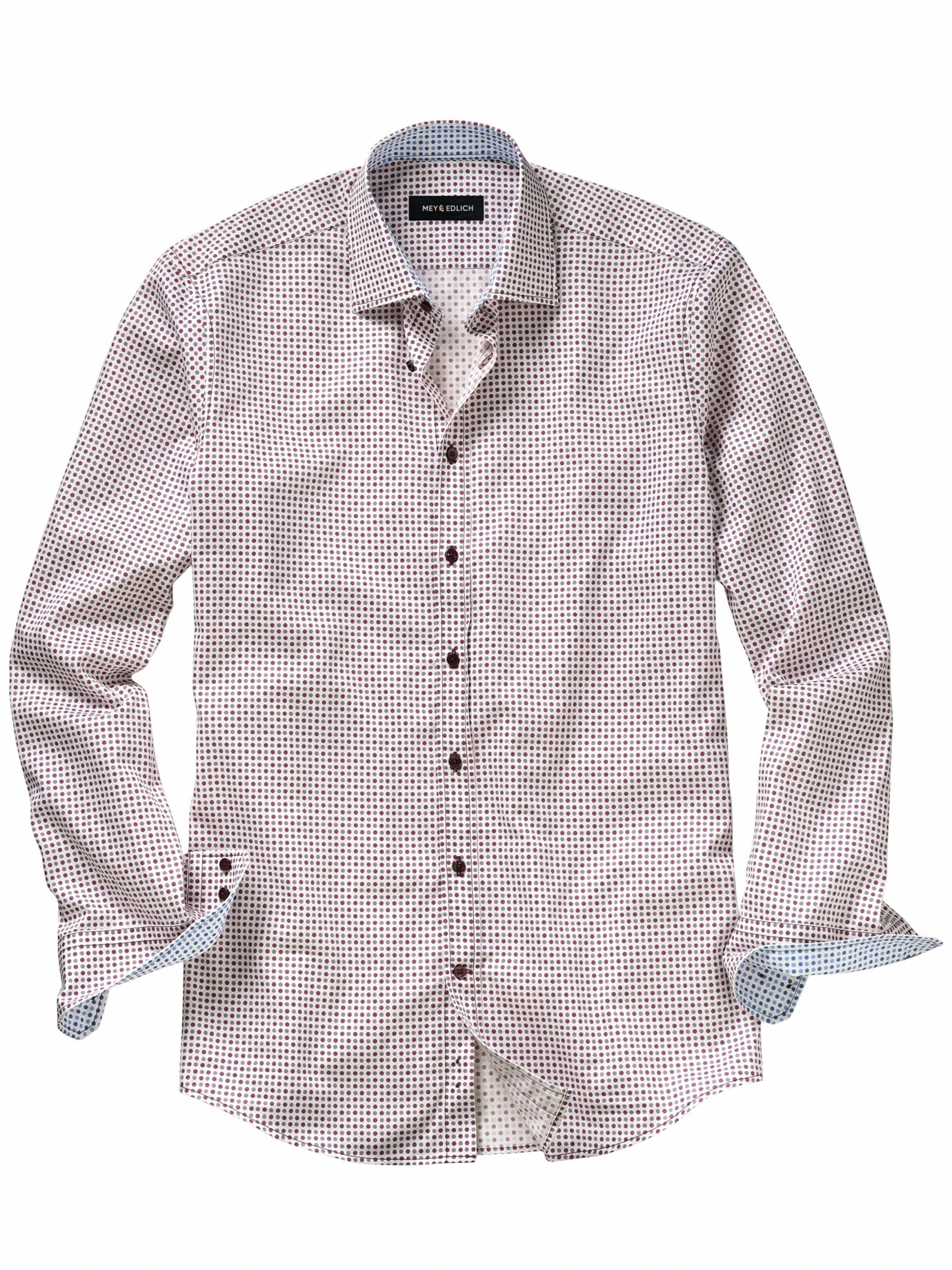 Dieses Hemd ist gewinnend wie ein Lächeln. Dot-Shirts machen Laune, was sich beim Anziehen auf den Träger und dann auf seine Mitmenschen auswirkt. Gemacht für die, die mit Charme weiterkommen. Die feinen Punkte sind auf einen Baumwollsatin mit edel glänzender Oberfläche und angenehm weichem Griff gedruckt. Dots nehmen jedem Anzug die Strenge und begegnen Verhandlungspartnern mit Augenzwinkern. An der Bar wird eine rockige Lederjacke zum bewusst inszenierten Gegenstück.