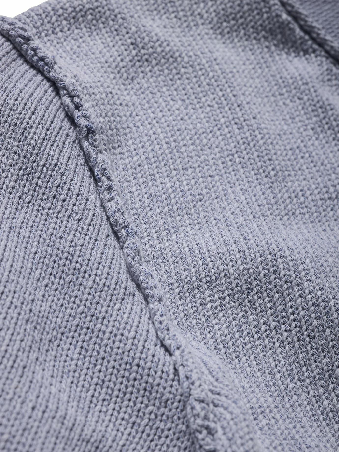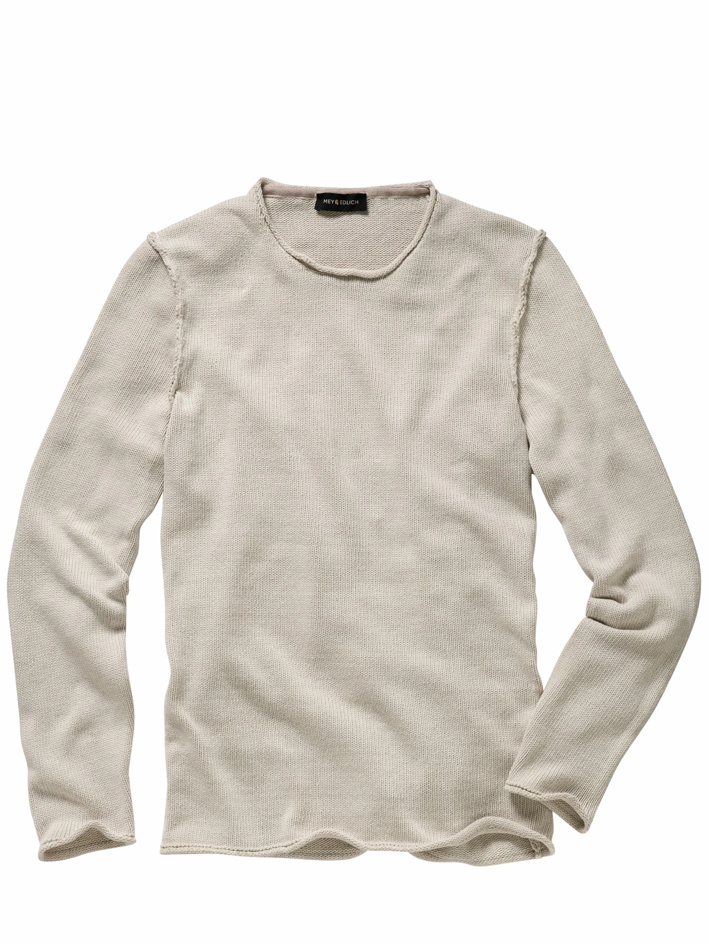 Macht Positiv-Schlagzeilen. Er drängt sich nicht ins Bild, die Rollkanten weisen dezent darauf hin, dass in ihm ein modisch informierter Kopf steckt. Mit 5 Gauge ist der Pullover etwas gröber gestrickt. Der hohe Baumwollanteil im italienischen Garn gleicht den Temperatursprung vom Außentermin zum Innenraum aus, die Hightech-Fasern bringen Ausdauer und Stabilität. Ins Café mit Jeans oder Chino, zur Lesung unter dem Anzug.