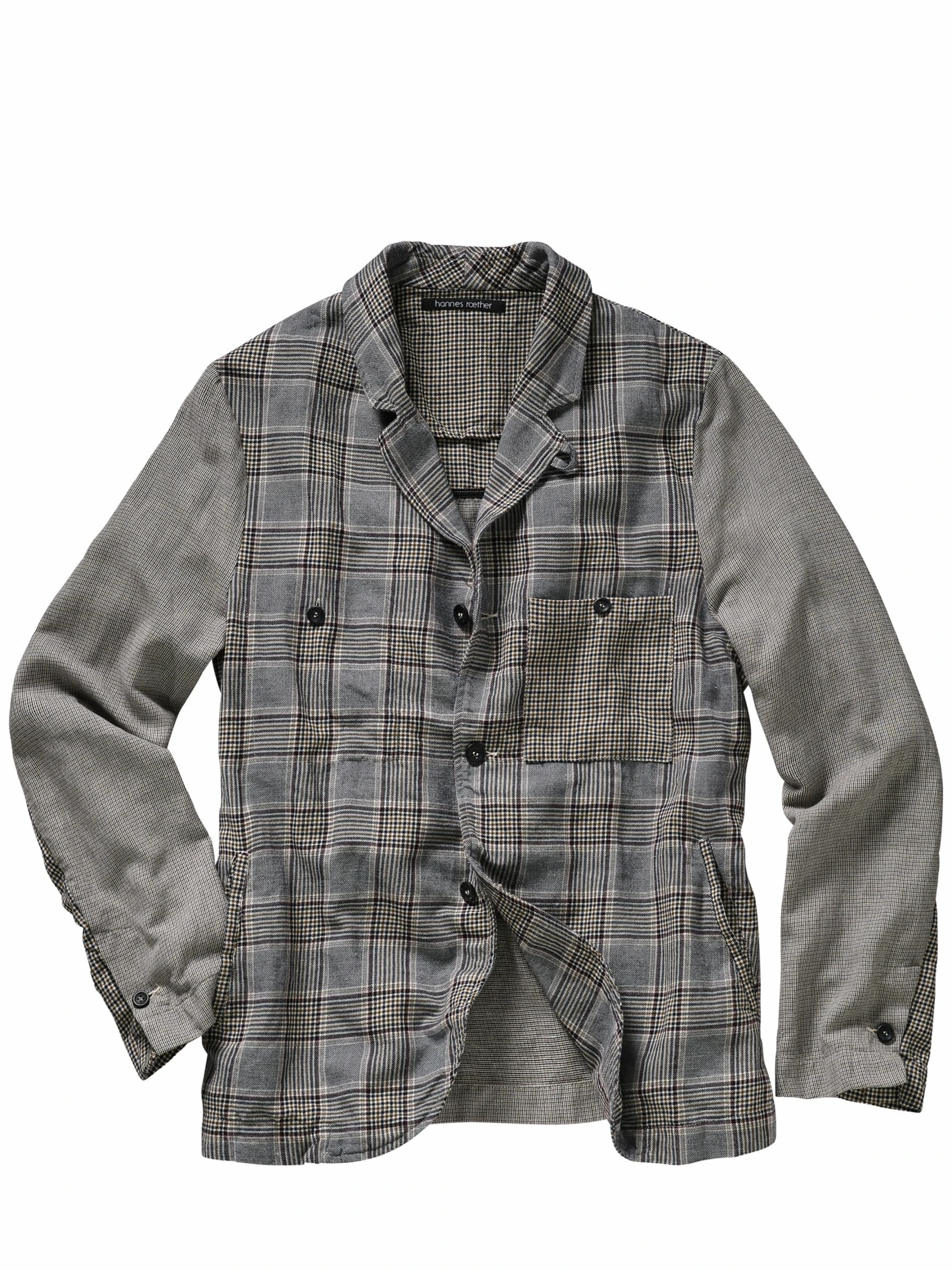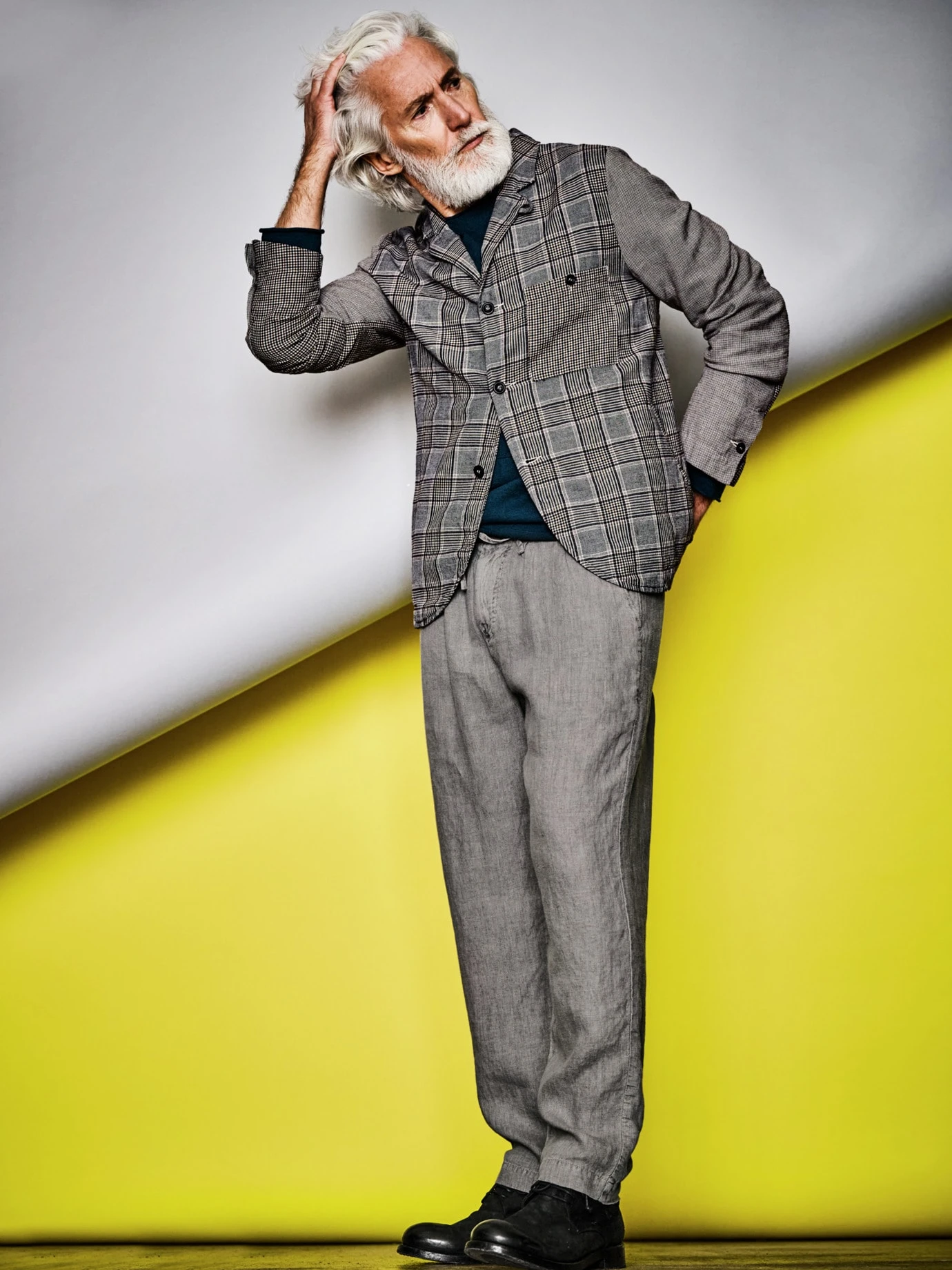 Wiedersehen im Grenzland. Wer hannes roether kennt, weiß, dass der Designer gerne Grenzen überschreitet und mit jedem neu kreierten Stück die Grenze des Machbaren bewusst verschiebt. Sobald Sie das Drei-Knopf-Sakko schließen, ergibt sich eine wunderschön geschwungene Form, den Kragen tragen Sie heruntergeschlagen als Revers- oder auch als Stehkragen. Gearbeitet aus einem sommerlichen Stoff, er stammt aus Italien, mit einem Hauch von Leinen. Und genauso konfektioniert, dass das Sakko alles verzeiht, Sie können es daheim ganz simpel waschen.