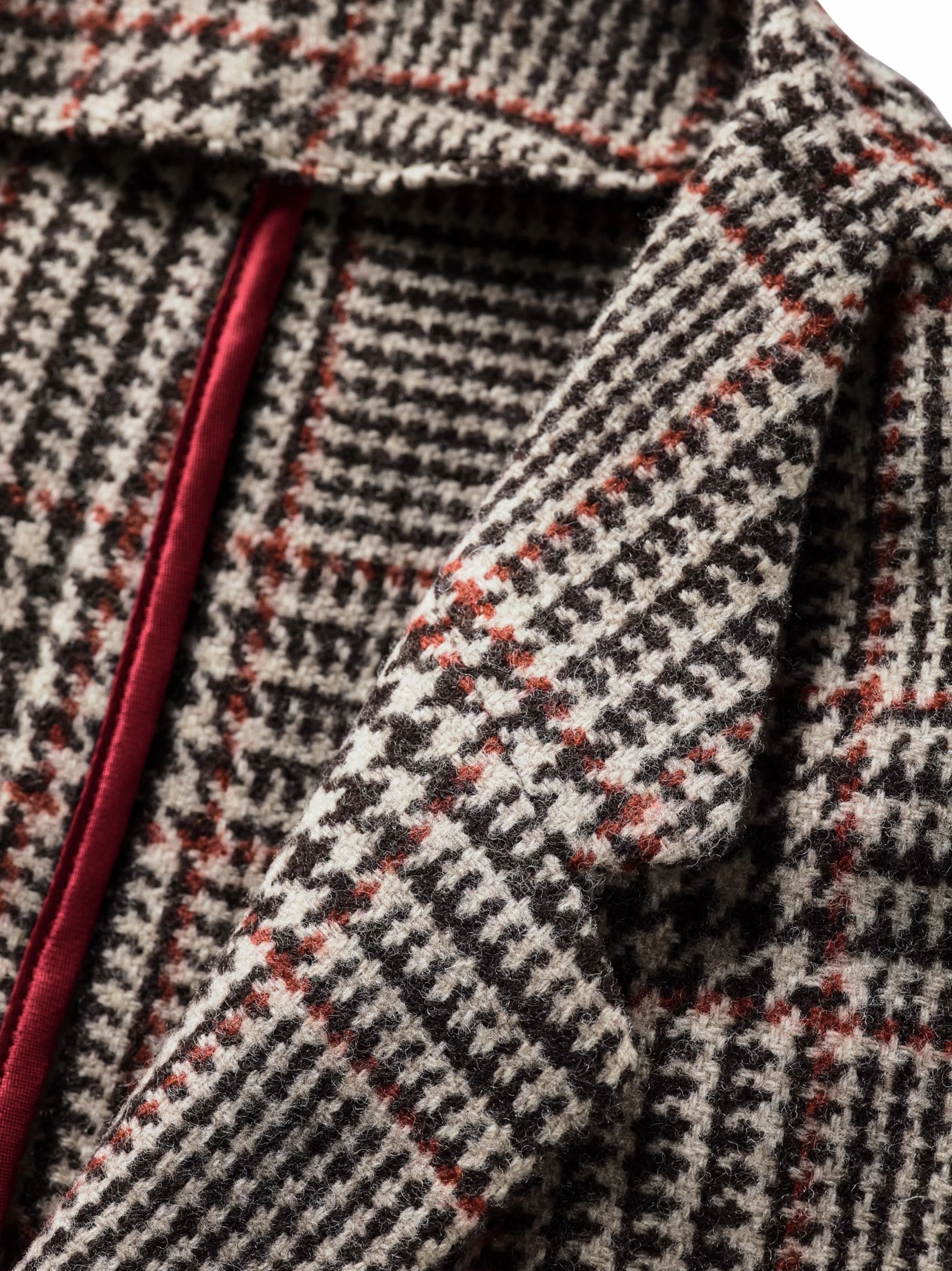 Er hätte es sofort bemerkt. Dieser monochrome Glencheck mit dem subtilen roten Kontraststreifen ist anders. Die erste Berührung hätte den Schluss erlaubt, dass der weiche Wollstoff eine Zukunftsfaser hat. Holmes forensischer Beobachtung wäre auch nicht entgangen, dass der stoffgleiche Rücken und der Reverskragen den Verzicht auf ein Sakko zuließen. Für Sherlock ist es zu spät. So empfehlen wir diese Weste Ihnen. Und dem MI6, auch wenn der nach dem Ableben 007s noch auf Personalsuche ist.