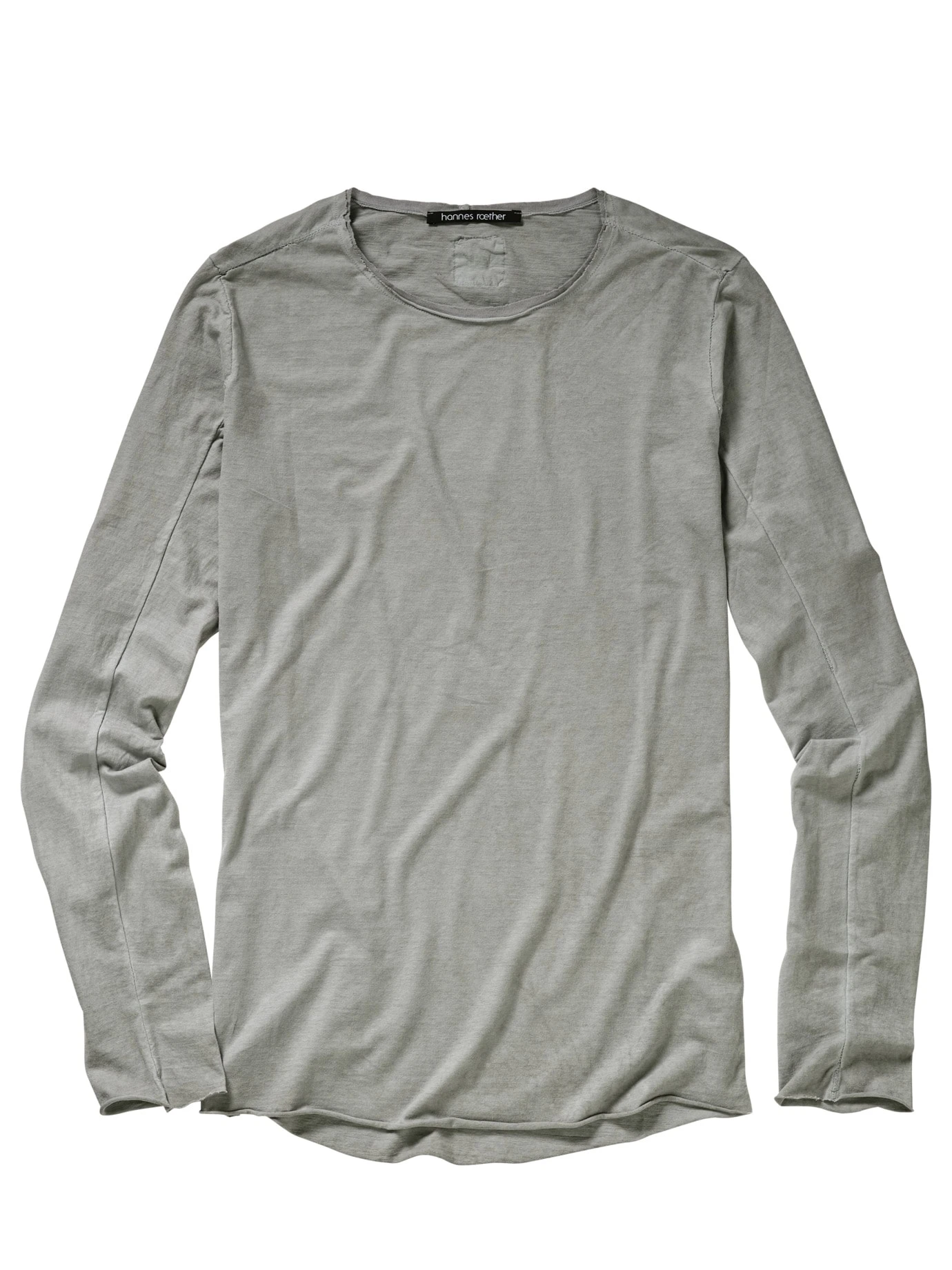 Gutes Design ist zeitlos. Und trägt damit Wert. hannes roether stellt an jedes seiner Kleidungsstücke höchste Bedingungen. Angefangen beim hochwertigen Stoff, hier ein erhabener Baumwolljersey – made in Portugal. Verarbeitet dann mit offenen, rollenden Kanten und einer vorverlegten Naht, die optisch Schultern betont. Schnitt und Ärmel sind die modische Spur länger.