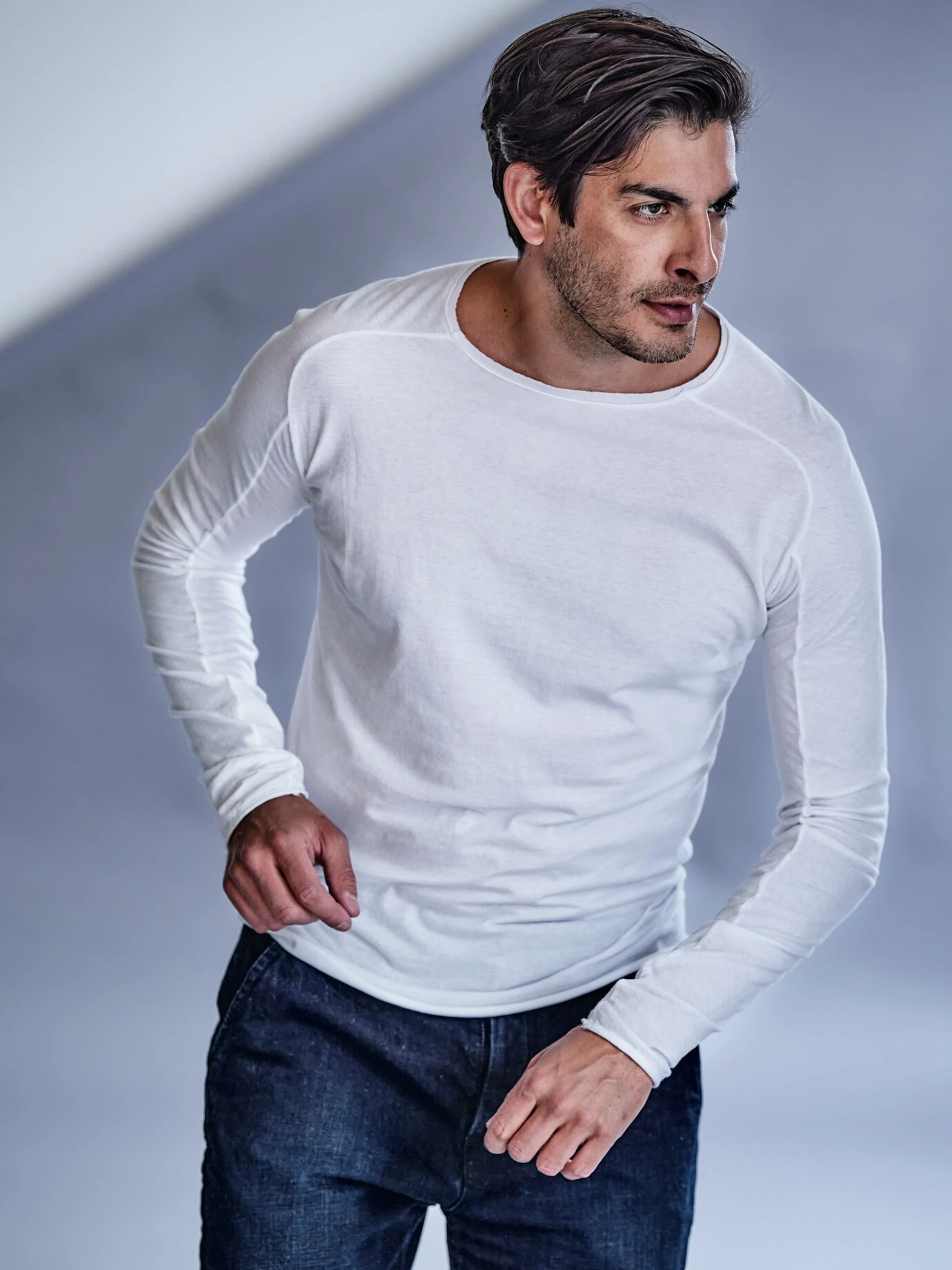 Verarbeitung: Dieses Shirt z. B. ist aus einem sehr feinen Baumwolljersey (made in Portugal), mit offenen, rollenden Kanten. Trägt sich einmalig – am liebsten jeden Tag. Schulterbetonende Raglanärmel (bei T-Shirts eine Seltenheit). Ohne Seitennähte, dafür mit Rückennaht. Etwas längerer Schnitt mit längeren Ärmeln. Regular Fit.
