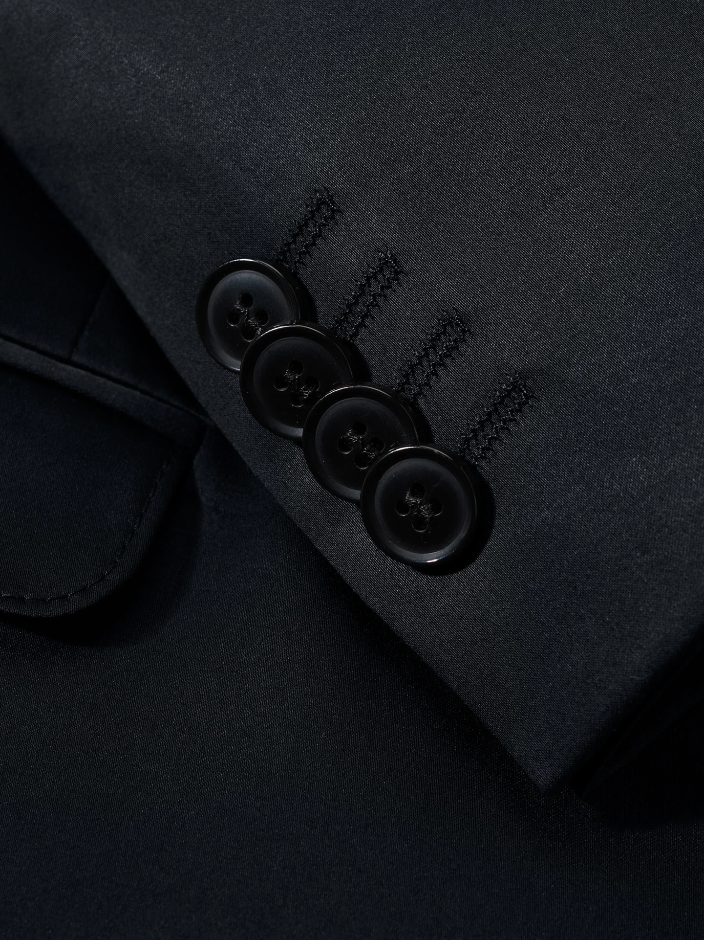 Auffallen, ohne Aufsehen zu erregen. Dieses Anzugsakko ist für jene Gratwanderung innerhalb der Männergarderobe entwickelt. Mittlerweile erfreut es sich so großer Beliebtheit, dass wir es regelmäßig in neuen Farben launchen. Hier ein edles Schwarz, das dem Anlass gegenüber stets die nötige Anerkennung ausdrückt. Mit lässigem T-Shirt im Pitch fürs nächste Projekt, mit herausragendem weißem Hemd ersetzt das Sakko mit gleichnamiger Hose (24-7932-7) beinahe den Smoking. Das sonst übliche matte Schurwolltuch weicht einem hochwertigen Broken Satin mit subtil-edlem Glanz. Im Baukastenprinzip gefertigt, sodass Sie Sakko und Hose einzeln und in unterschiedlichen Größen bestellen können. Klassische Verarbeitung vom europäischen Anzugmacher.