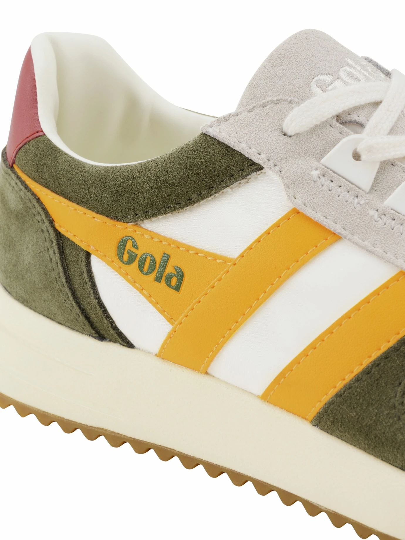 Leichtfüßige Retro-Power. Was Luftschiffe, Ballons und Fallschirme schweben lässt, kann Laufschuhen nicht schaden – dachte sich der britische Sportschuh-Spezialist Gola. Und brachte die leichte „Fliegerseide“ aus strapazierfähigem, wasserfestem Nylon als Obermaterial bei seinem von den 1980ern inspirierten Sneaker Chicago zum Einsatz. Schwerelos drauf abgestimmt: die Laufsohle aus dämpfendem Kunststoffschaum. Sieht übrigens nicht nur zur Jogginghose verdammt gut aus.