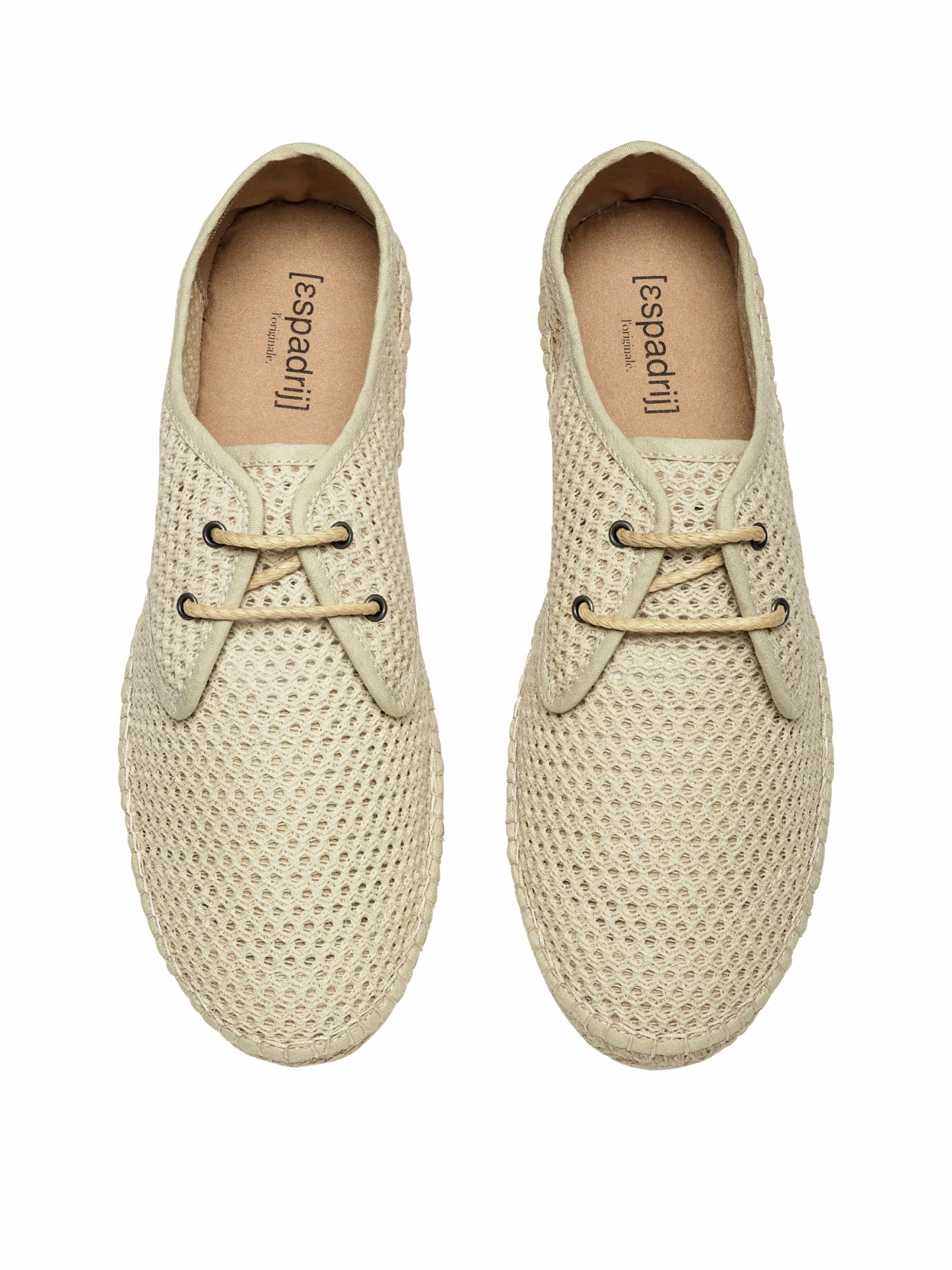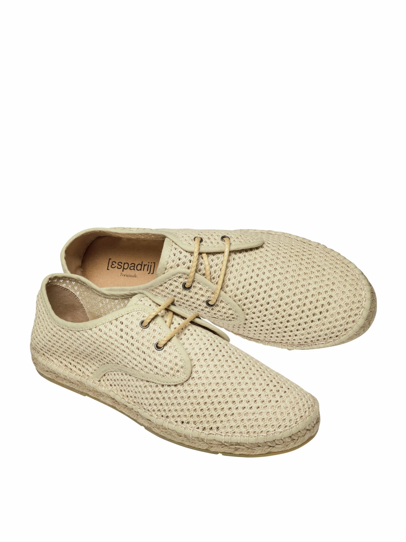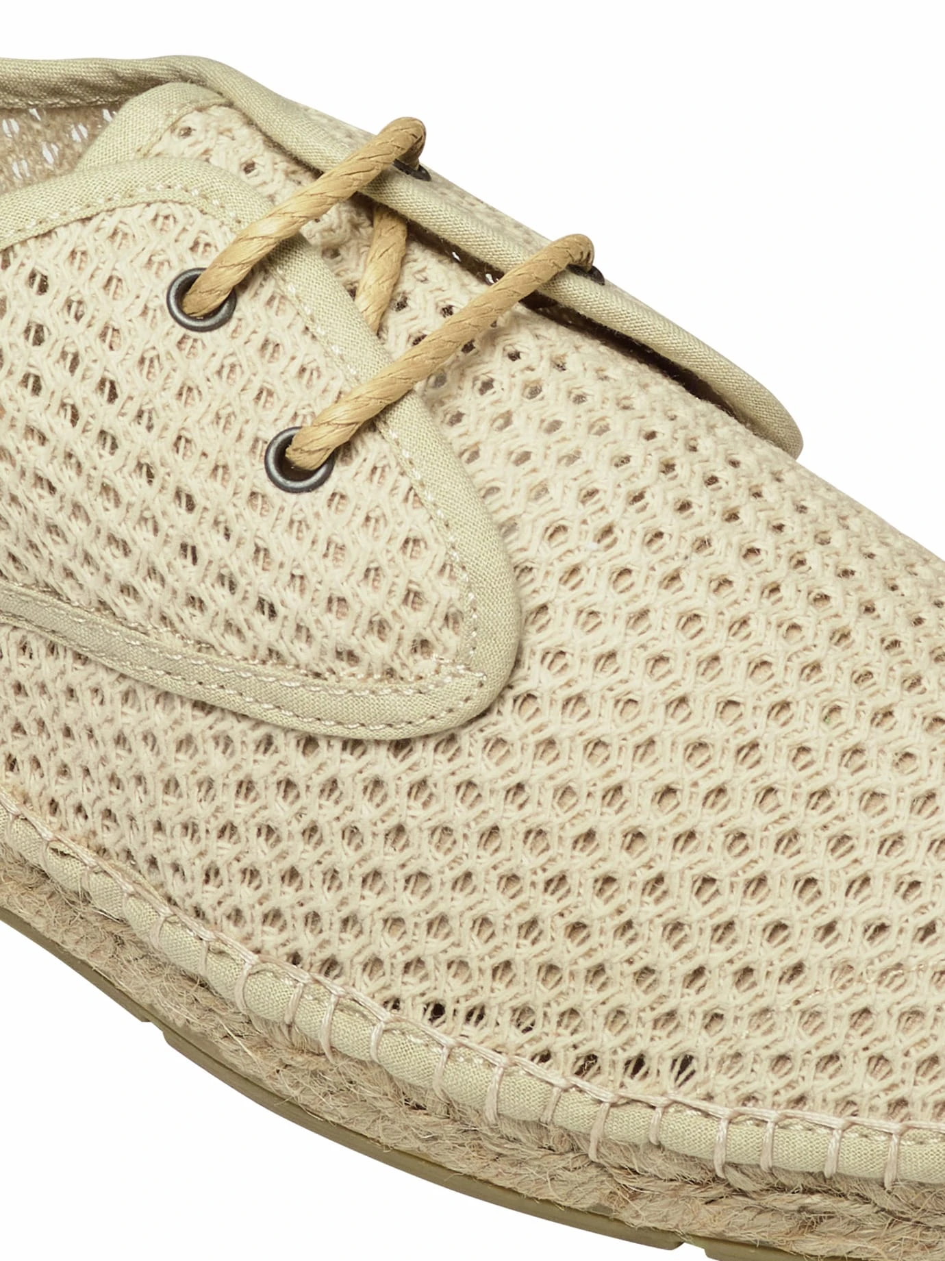 Material: Obermaterial (Mesh): 70 % Baumwolle, 30 % Polyester. Ungefüttert. Decksohle: Jute. Laufsohle aus Naturkautschuk. Dreck schrubben Sie ganz pragmatisch mit Seifenlauge weg. Der Schuh fällt klein aus. Wir empfehlen eine Nummer größer.