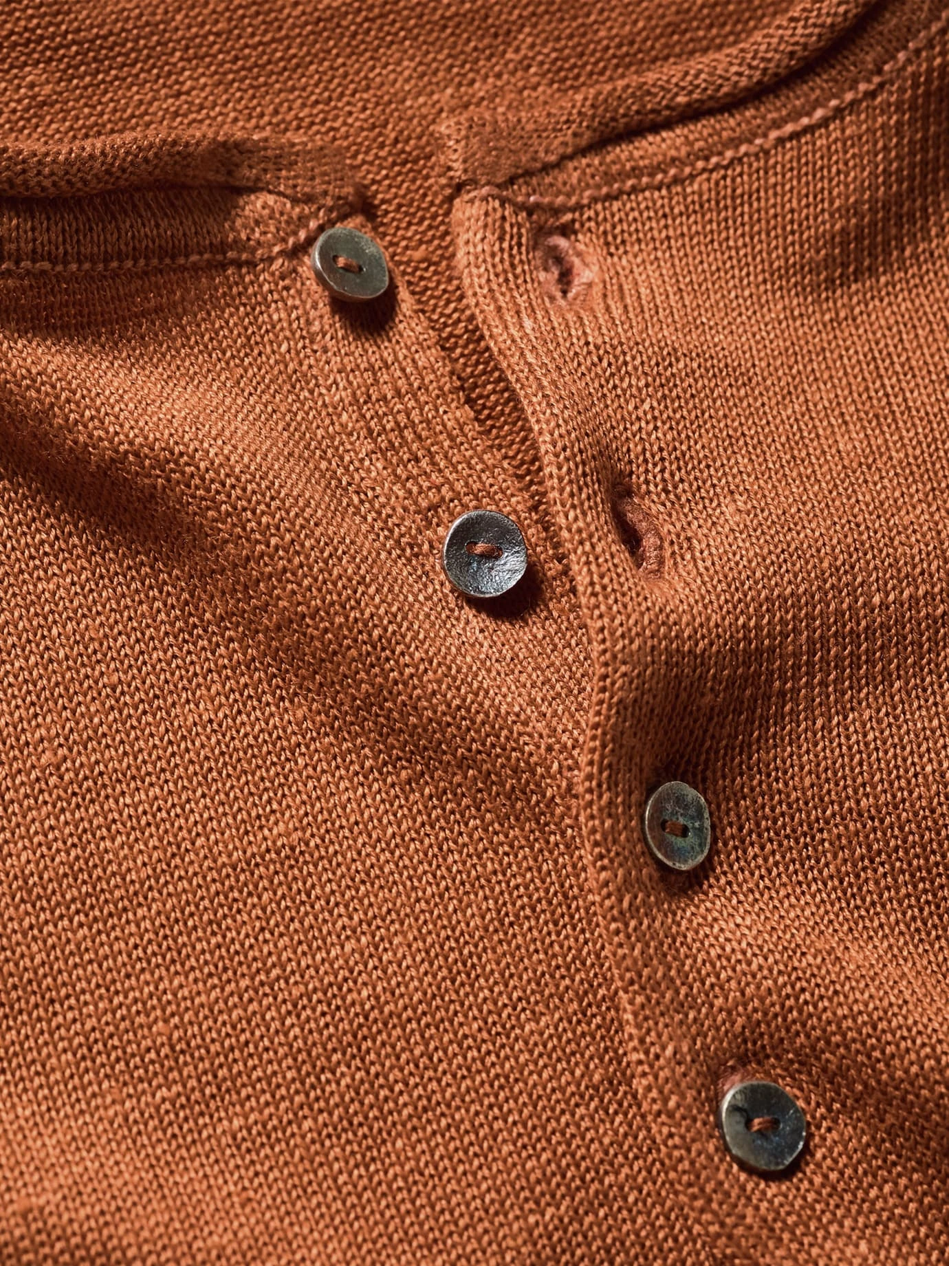 Handmade in Nepal. Dieses Henley ist aus feinfädigem Leinen aus dem Himalaya gestrickt. Per Hand. Luftig und haltbar. Mit dem kleinen Messingring zeigt neyo. auf, dass wir alle Teil eines Kreislaufs sind, und übernimmt Verantwortung für die an der Entstehung des Shirts Beteiligten, Dunga bedeutet auf Nepali übrigens Boot. Stilistisch lehnt es sich an die Trikots britischer Ruderer an: gerader Schnitt, Knopfleiste. Ausdauernd gut zu Chinos, Jeans und Shorts.