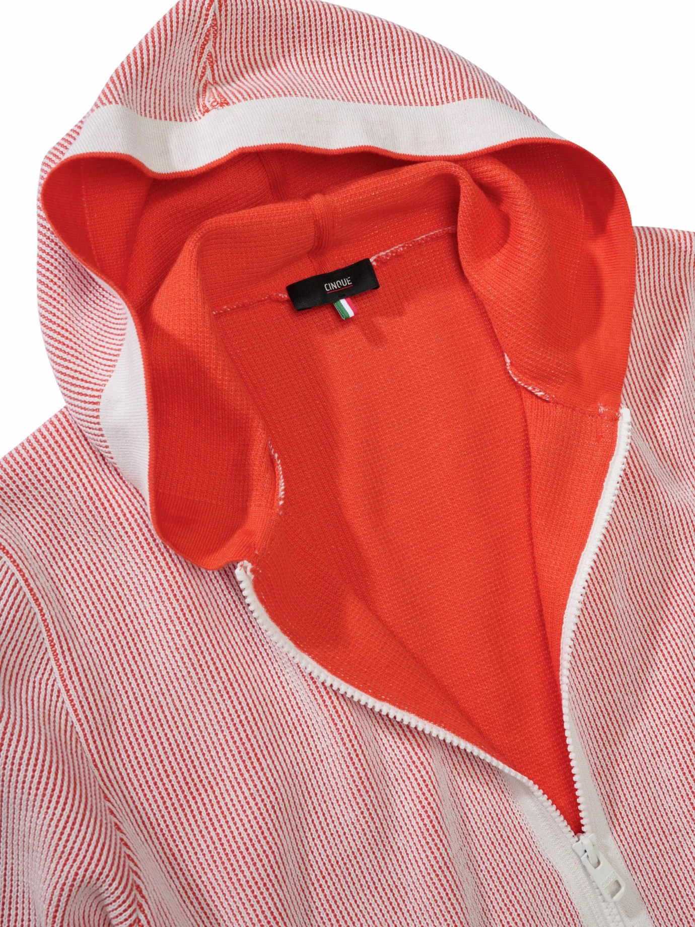 Erstrahlt nach Ihren Regeln. Je weiter Sie den Zwei-Wege-Reißverschluss öffnen, desto stärker knallt sie raus: nur innen ist die Jacke Knallorange (zu erkennen am Kapuzeninneren), die Bündchen akzentuieren, sonst ist sie schlicht. Macht sie damit überraschend und kombinationsstark (passt de facto zu jeder Shirtfarbe, nur Mut). Gestrickt aus einer echten Sommermischung: Die Hälfte Polyacryl verstärkt die guten Eigenschaften der Baumwolle, macht die Jacke aber leichter und etwas nachgiebiger.