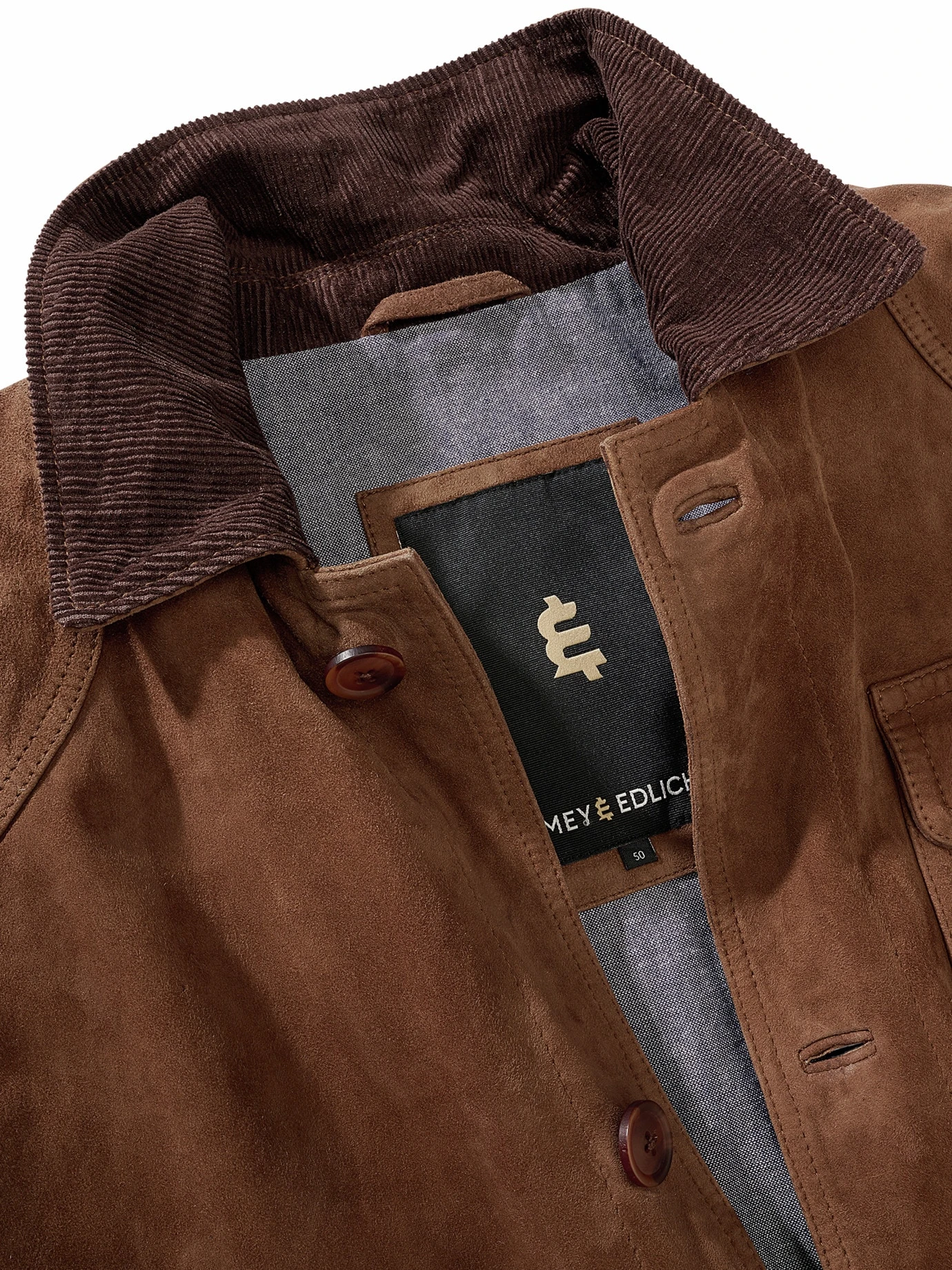 Material: Obermaterial: Ziegenvelours. Rumpffutter oben: 100 % Baumwolle. Rumpffutter unten und Ärmel: 100 % Polyester. Lederspezialreinigung.