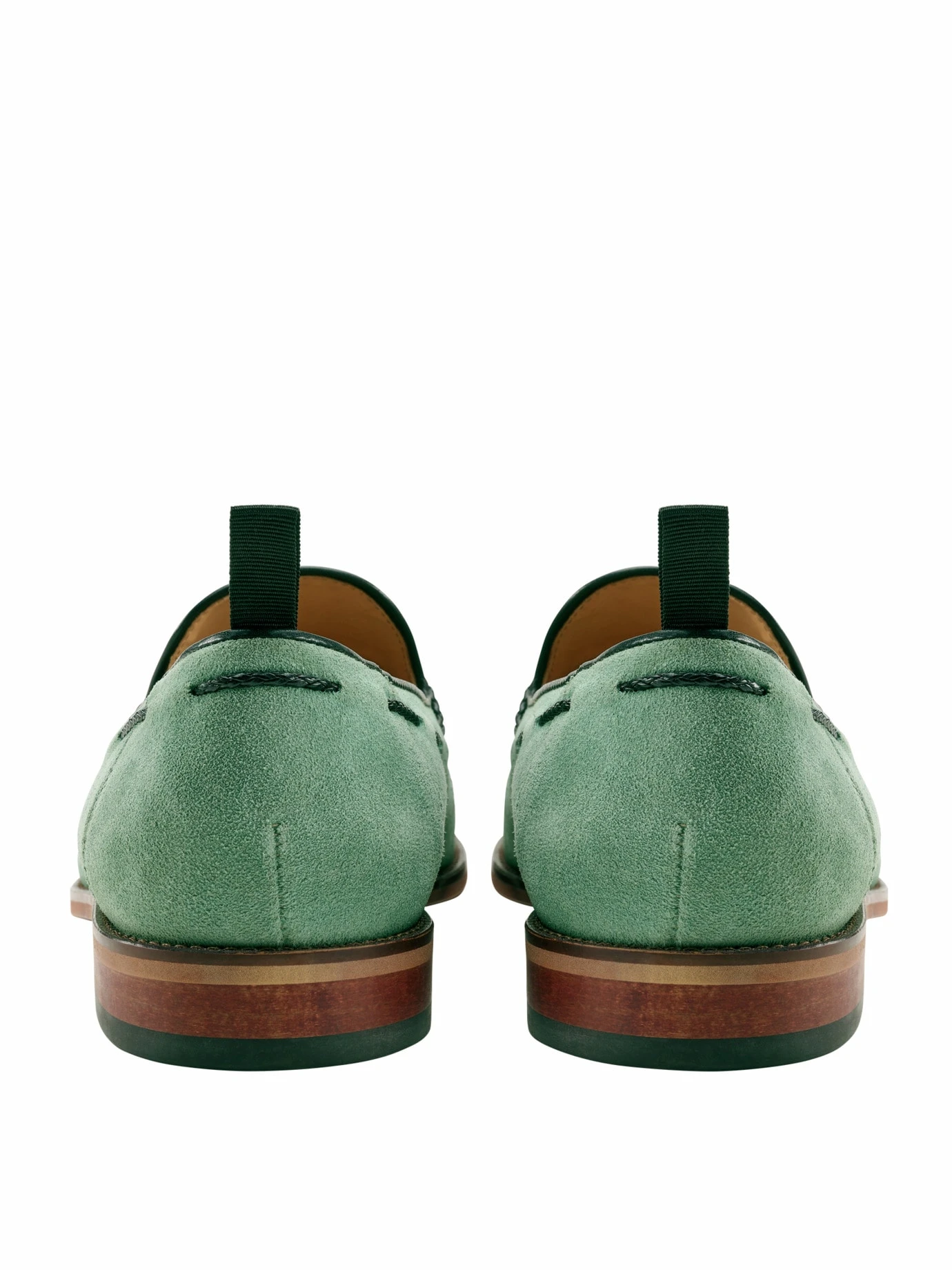 Der Schuh ist das Outfit. Auf ihm liegt die ganze Aufmerksamkeit und so wird es fast egal, was Sie obenrum tragen. Selbst schlichte Shirts und Hosen wirken, kombiniert zu diesem Slipper, alles andere als langweilig. Dafür sorgen die auffallende Form mit Troddel (auch Quasten genannt) und die hochsommerliche Farbe, ein Swimmingpool-Türkis.