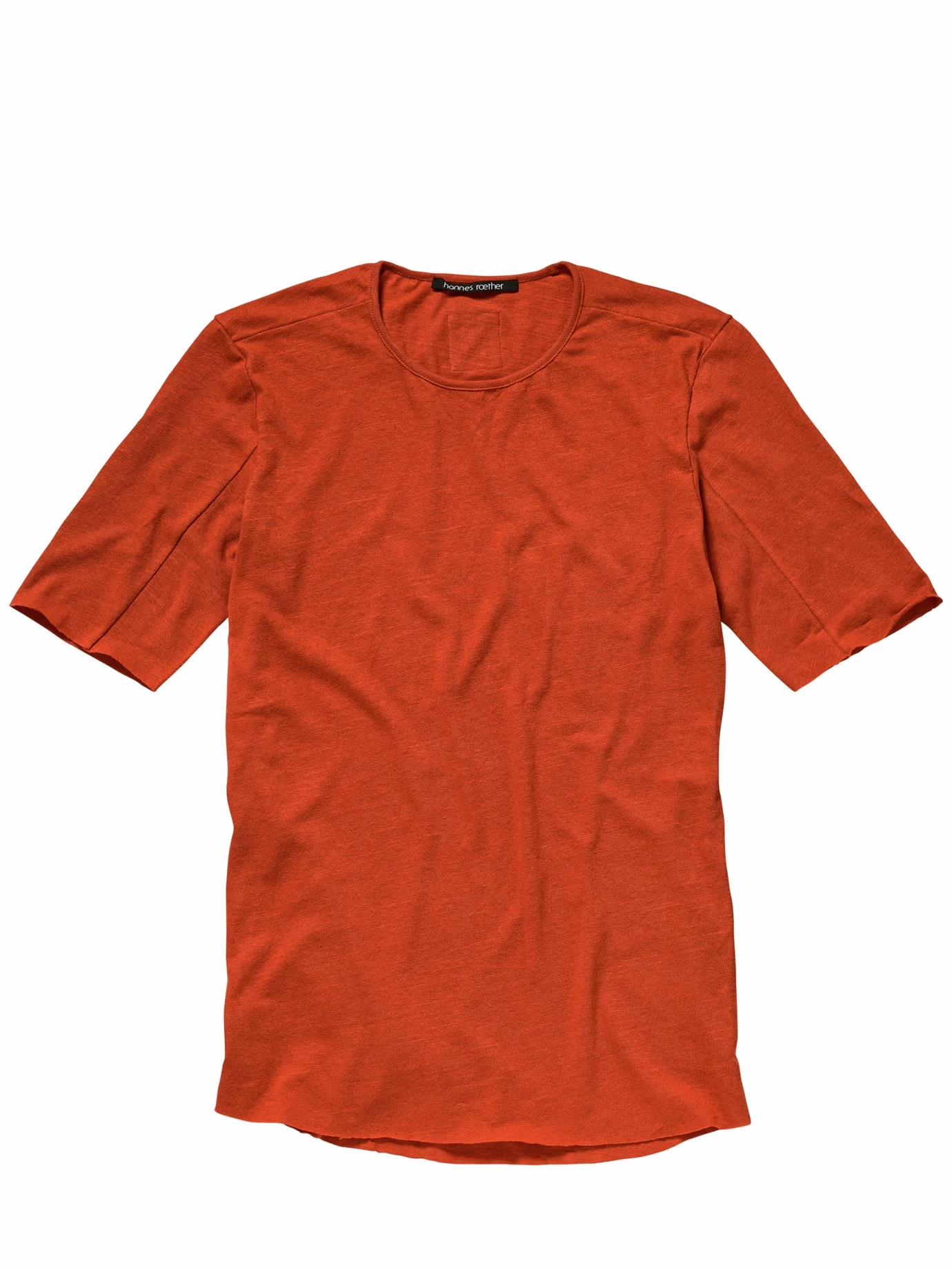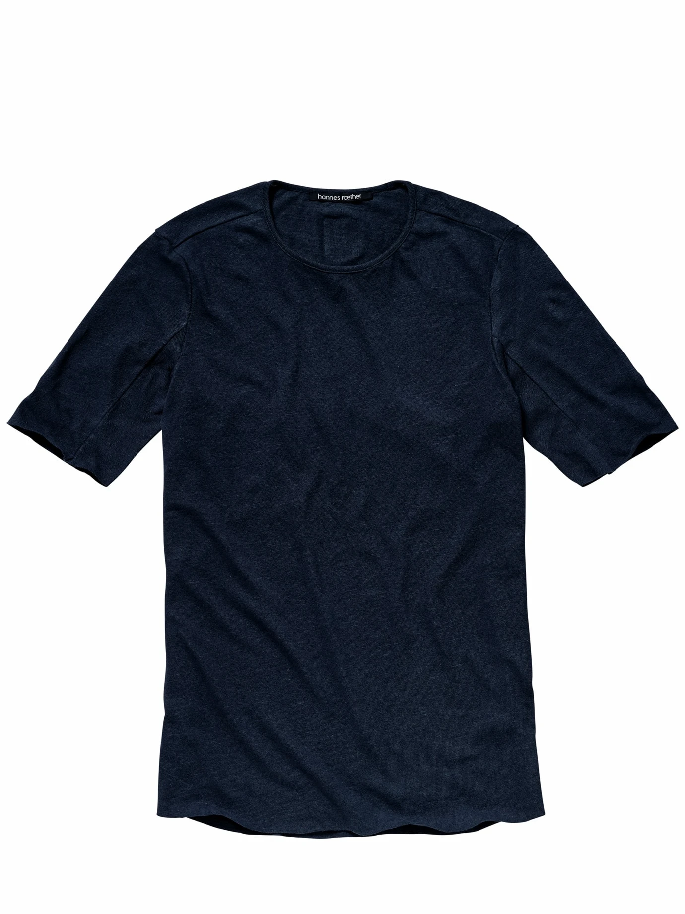 Von einem, der jede Naht durchdenkt. hannes roether prüft jeden einzelnen Nadelstich bei seinen Stücken und setzt nur die an, die es wirklich benötigt. Hier verlegt er die Ärmelnähte auf Bizepsmitte, der Rest ist charismatisches Design: schlicht, clean, mit einem Ausschnitt, der exakt anliegt, offenen Kanten an Saum und Ärmeln und in Summe (roether-typisch) ein Shirt, das die Zentimeter länger ist. Einmal angezogen hat es einen leicht kühlenden Effekt, dafür sorgt der portugiesische Jersey mit viel Leinen.