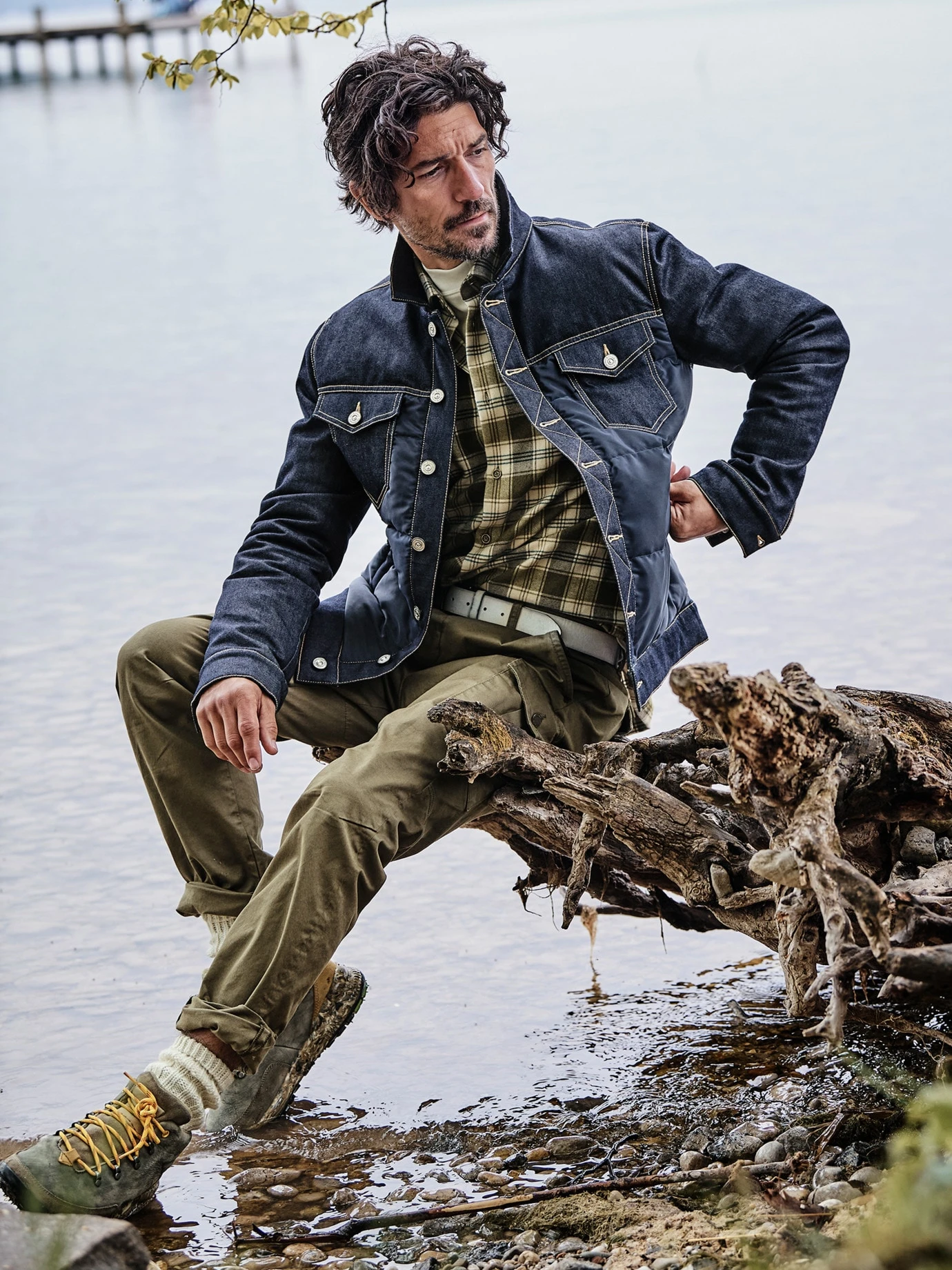 Endlich taugt die Jeansjacke an kälteren Morgen, ansonsten bleibt sie ganz in ihrem Element: gerade im Schnitt, hüftlang, mit Knopfleiste und Kragen sowie zwei Eingriffs- und Brusttaschen. Aus Mailand stammt der Entwurf, der die smarte Materialkombination neu erfasst und zu einem einzigartigen Crossover-Hybrid aus rauem Denim und modernem City-Look zusammenfügt – funktionell und wärmend wattiert für die kälteren Tage. Lässig zu Sweatshirt und T-Shirt, konsequent mit hellerer Jeans oder Cargo. Ob dann mit soliden Sneakern oder derben Boots, entscheiden Sie – oder das Wetter.
