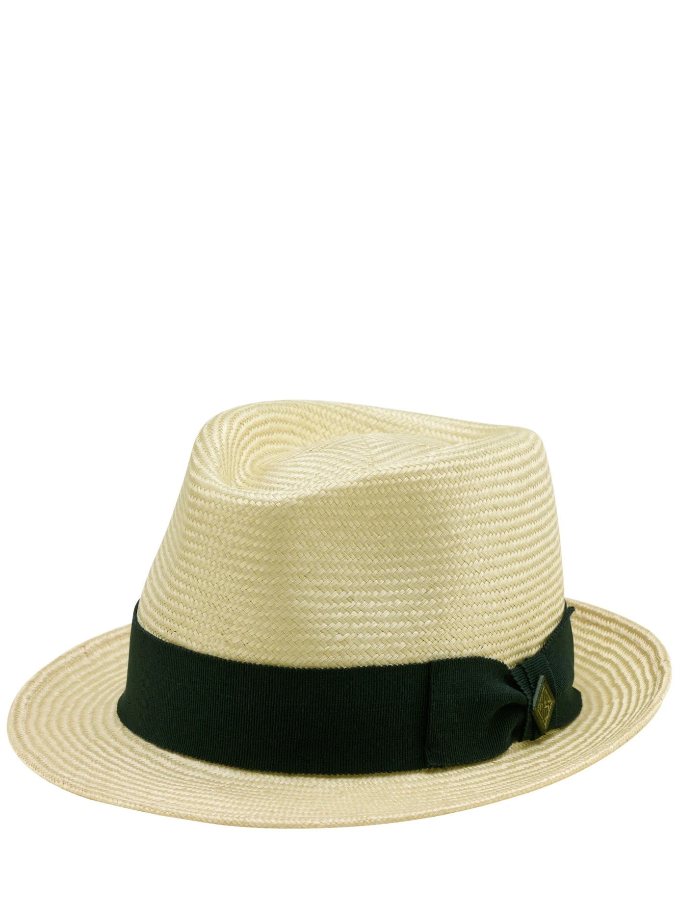 Angelehnt ans kölsche Hutmacherhandwerk anno 1950. Jeder Trilby ist auf einem Vintage-Stumpen von Pias Vater in Form gebracht. Ein Beweis für die klassische Form, mit leicht erhöhtem Kopfteil, typischem Ententeich und leicht gebogener Krempe. Aus den Blättern der Agave Sisalana geflochten, im Vergleich deutlich feiner, mit dezentem Schimmer und schirmt wunderbar Sonne ab.